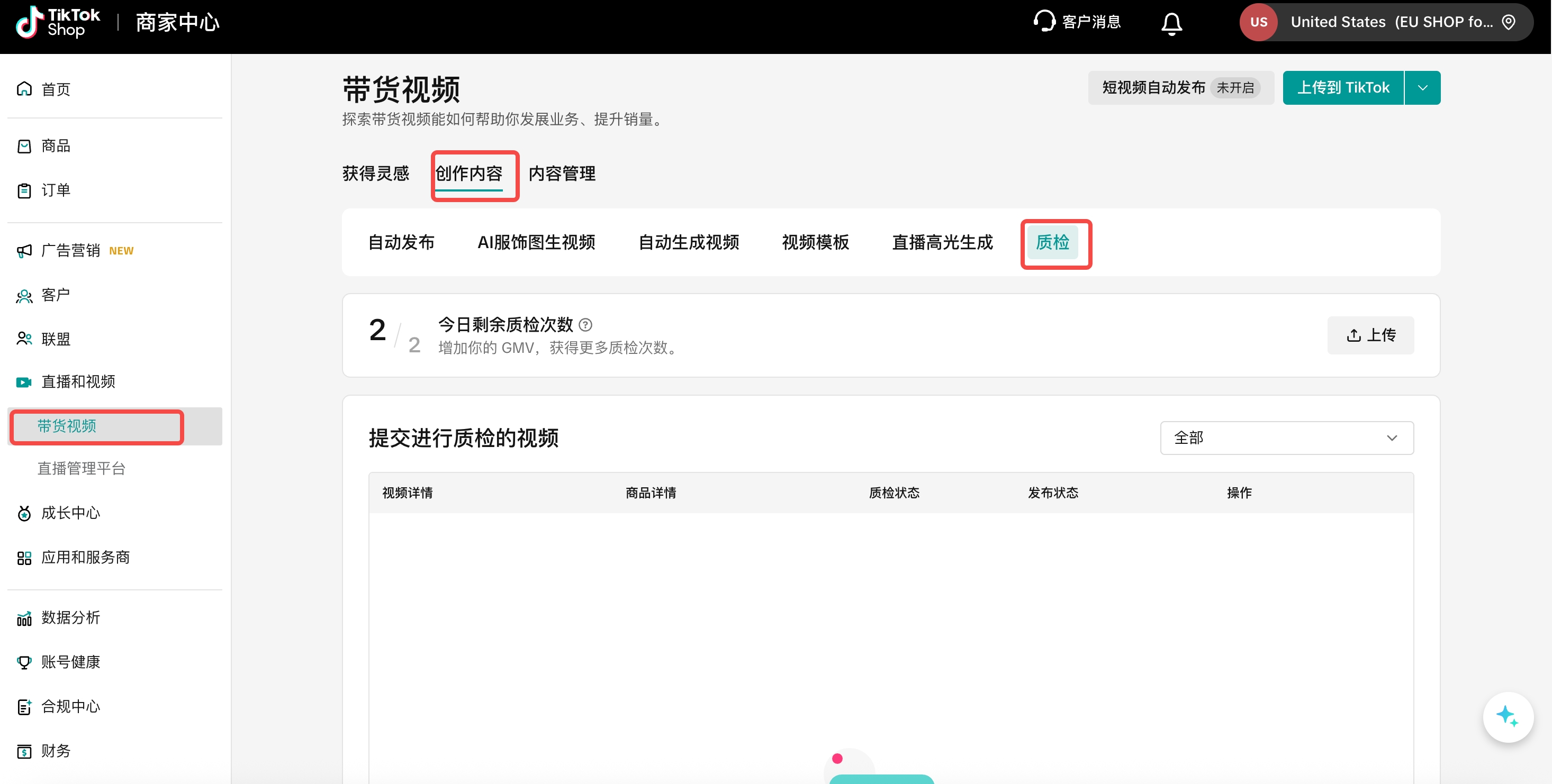 - 入口:https://seller.us.tiktokshopglobalselling.com/shoppable-videos/create-content/quality-check?from=tab