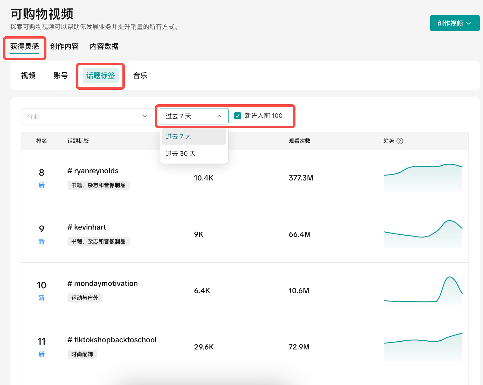 【卖家中心】同行优秀卖家的优质内容参考,可筛选细分行业、7-30天的内容。