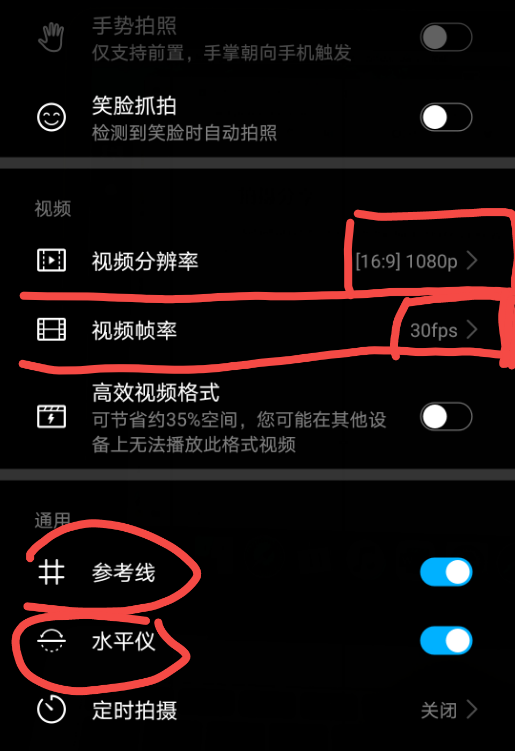 | 将视频分辨率调整为1080P 16:9 视频帧率设置为60帧 (室内强光环境设置30帧) 部分安卓手机有兼容性最佳的设置也一定要勾选上 这样手机就可以拍出高质量的视频画面 新手也可以将参考线和水平仪打开用来辅助拍摄 | 将视频分辨率调整为1080pHD,60fps (室内强光环境设置30帧) 格式设置成 兼容性最佳 这样手机拍摄出来的视频画面质量高,视频和其他设备的兼容度也高 |