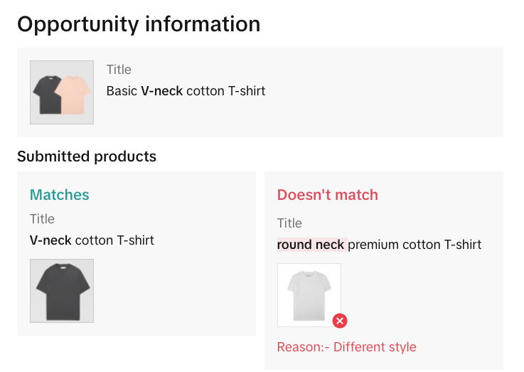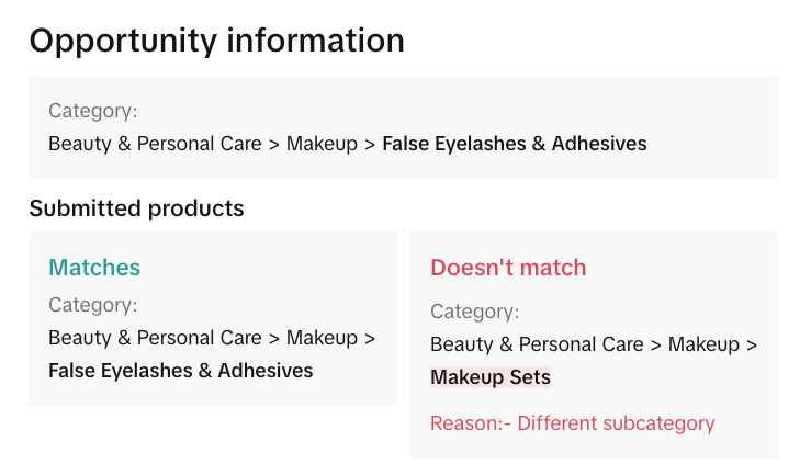 上传/关联的商品与机会商品不匹配。如果机会仍然有效且有更多适合匹配的商品,您可以再次尝试提交。