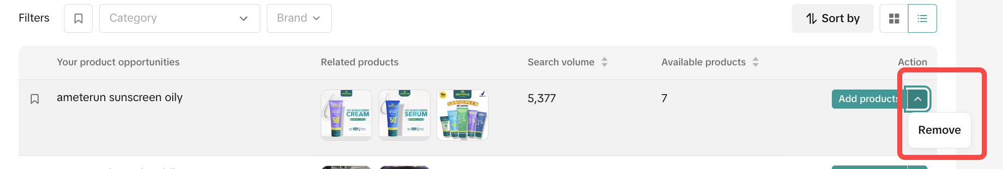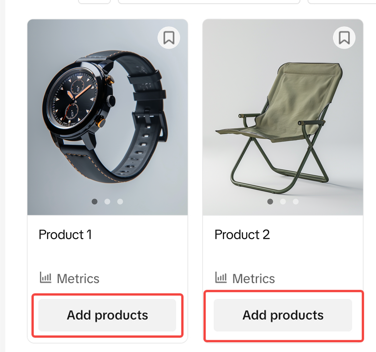 - 点击商品卡片上的“添加商品”按钮,关联现有品类中的类似商品,或为与机会指引商品卡牌类似的新商品报名。