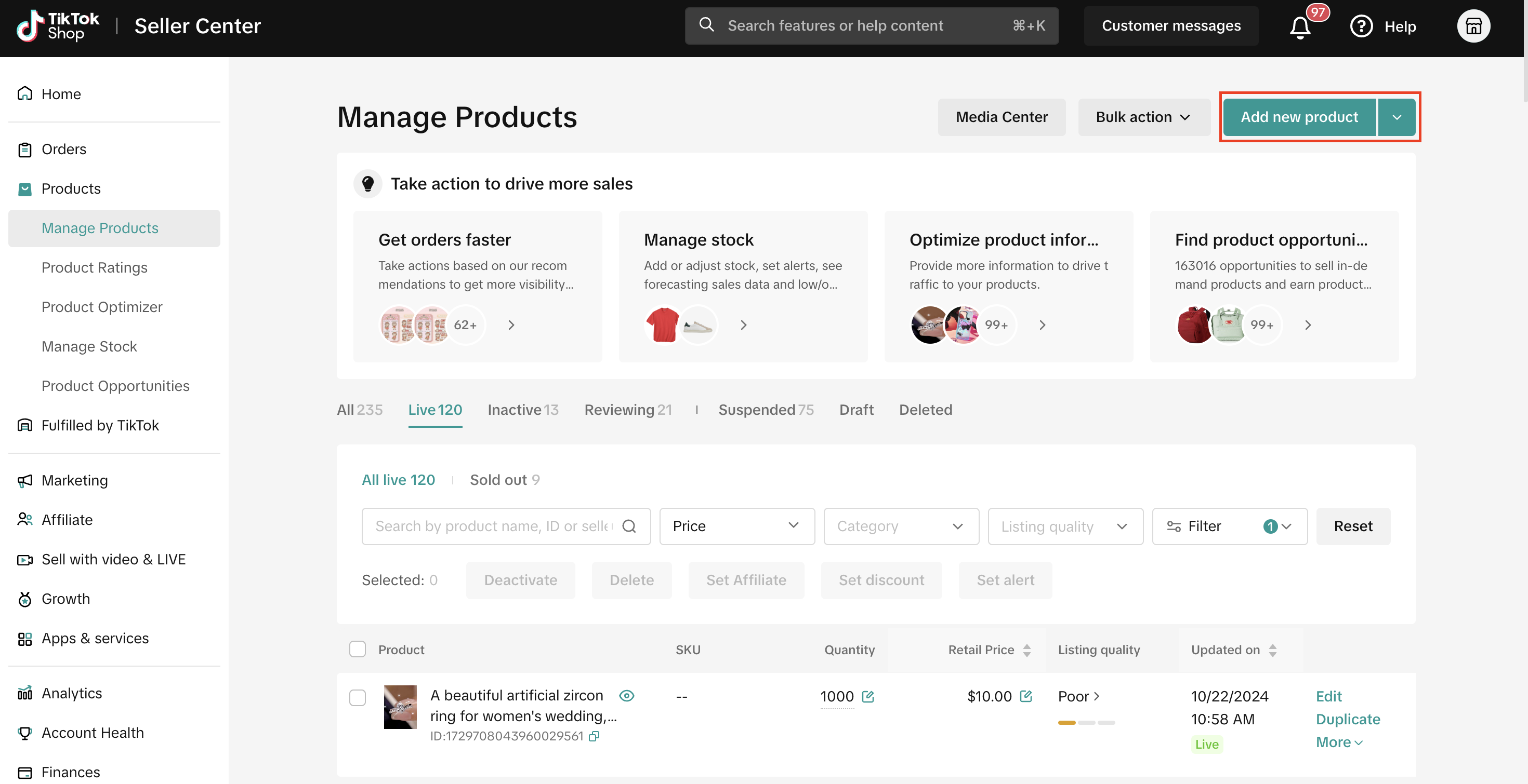 要使用预售功能,请先登录“商家中心”,点击左侧导航栏“商品”。选择“管理商品”,点击“添加新商品”。预售选项对所有商品开放,但只有新的商品发布页可以设置预售。