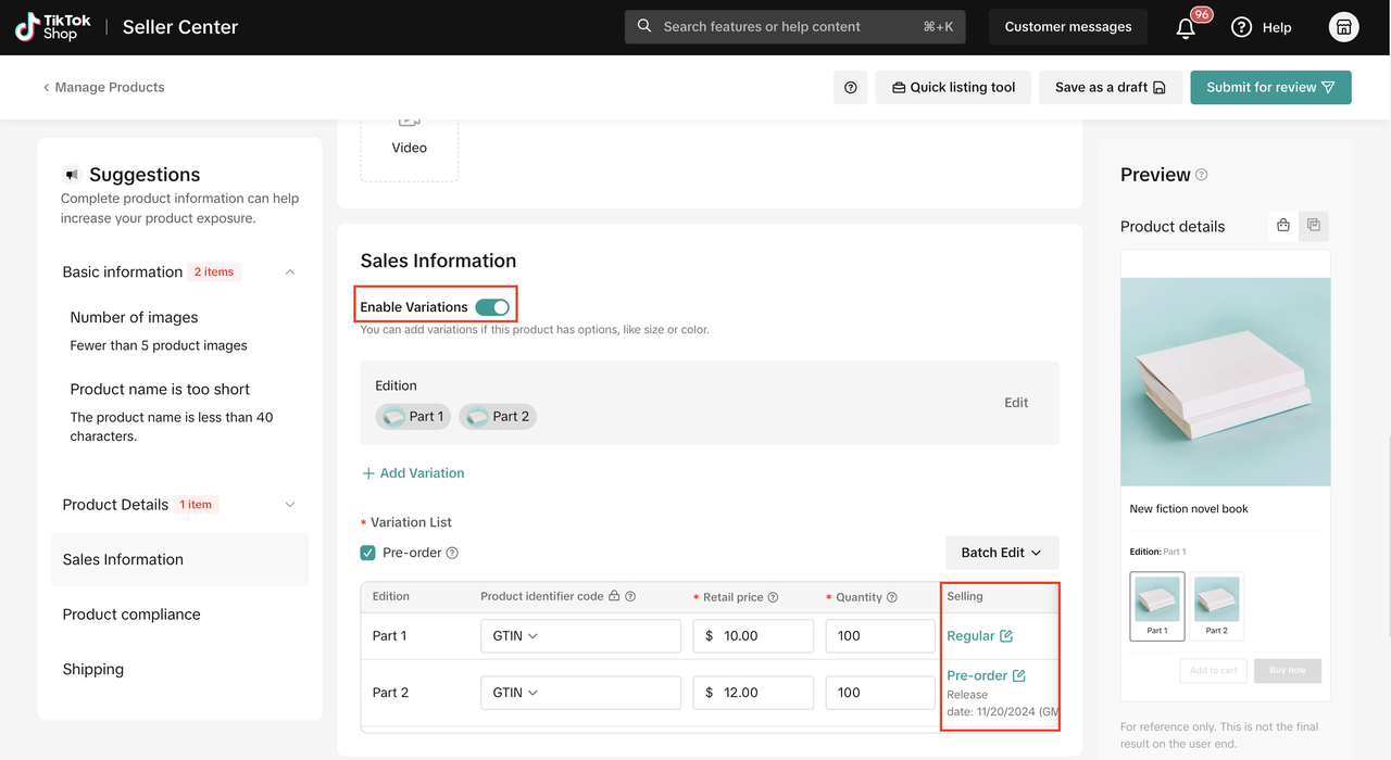 预售是一种全新的商品发布选项,适用于独家、限量或尚未上市且需延后发货的商品。