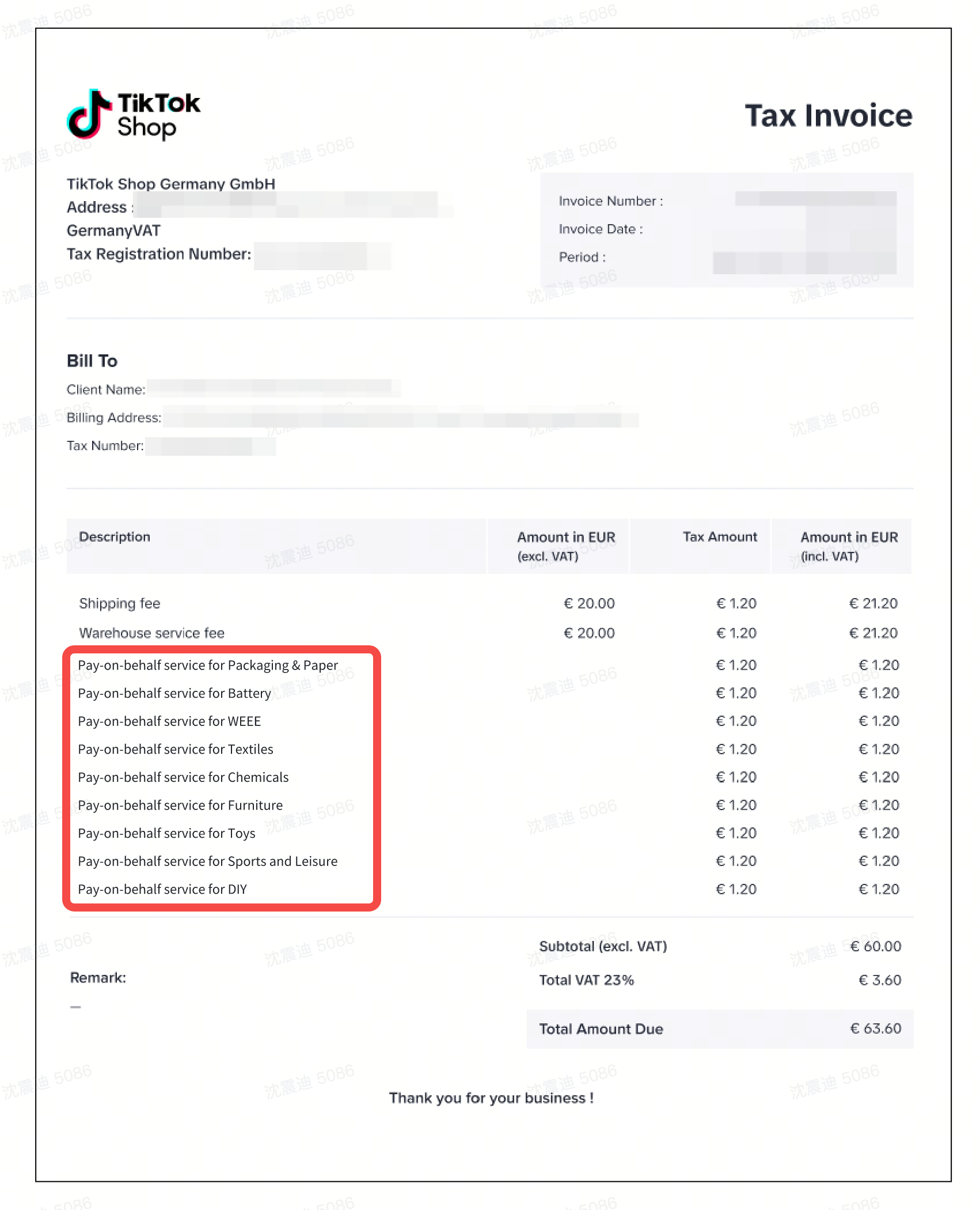 我们会从商家的TikTok Shop销售账号中扣除生态贡献费和TT服务费(合称“EPR 代付服务费”)。