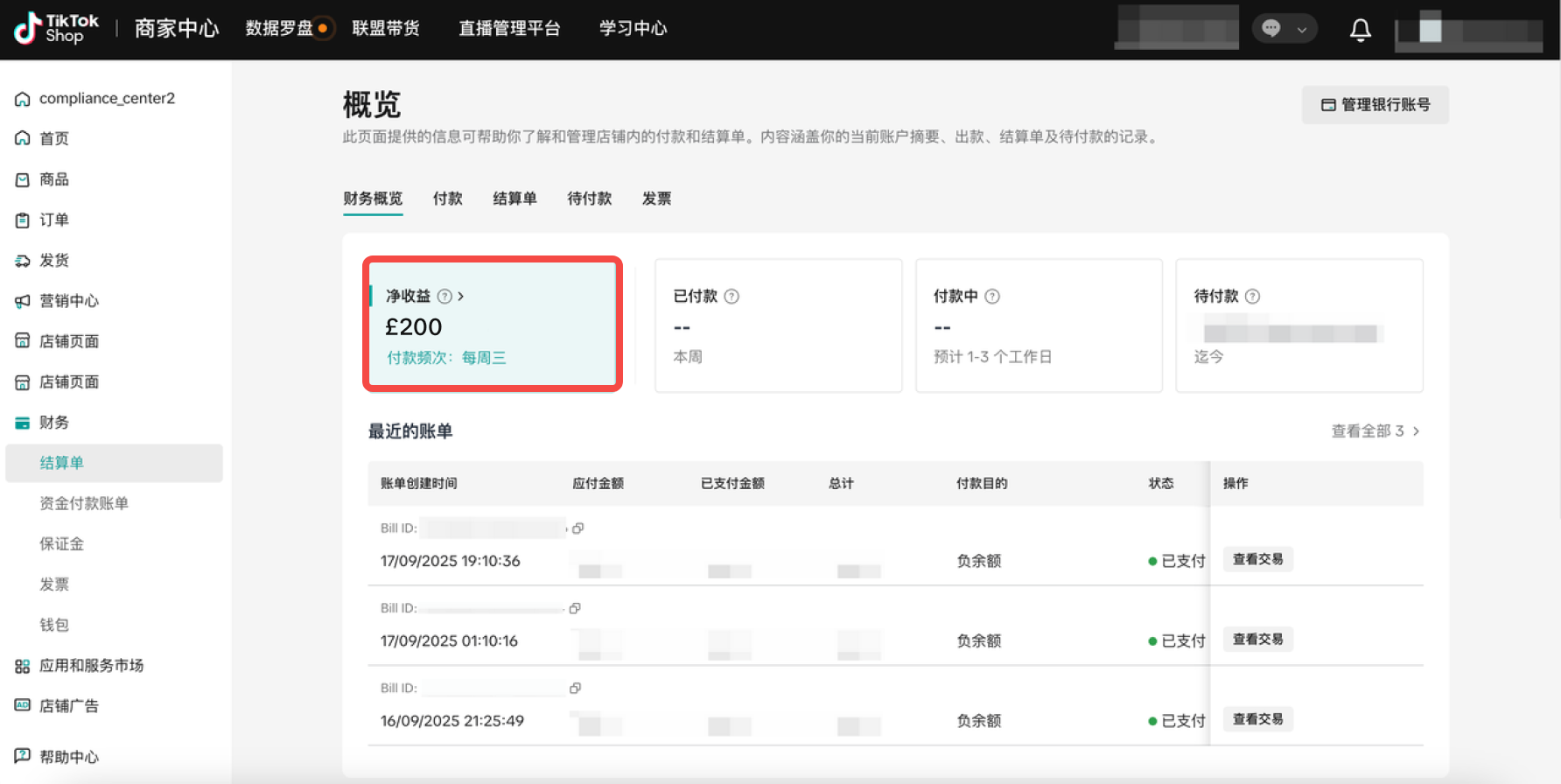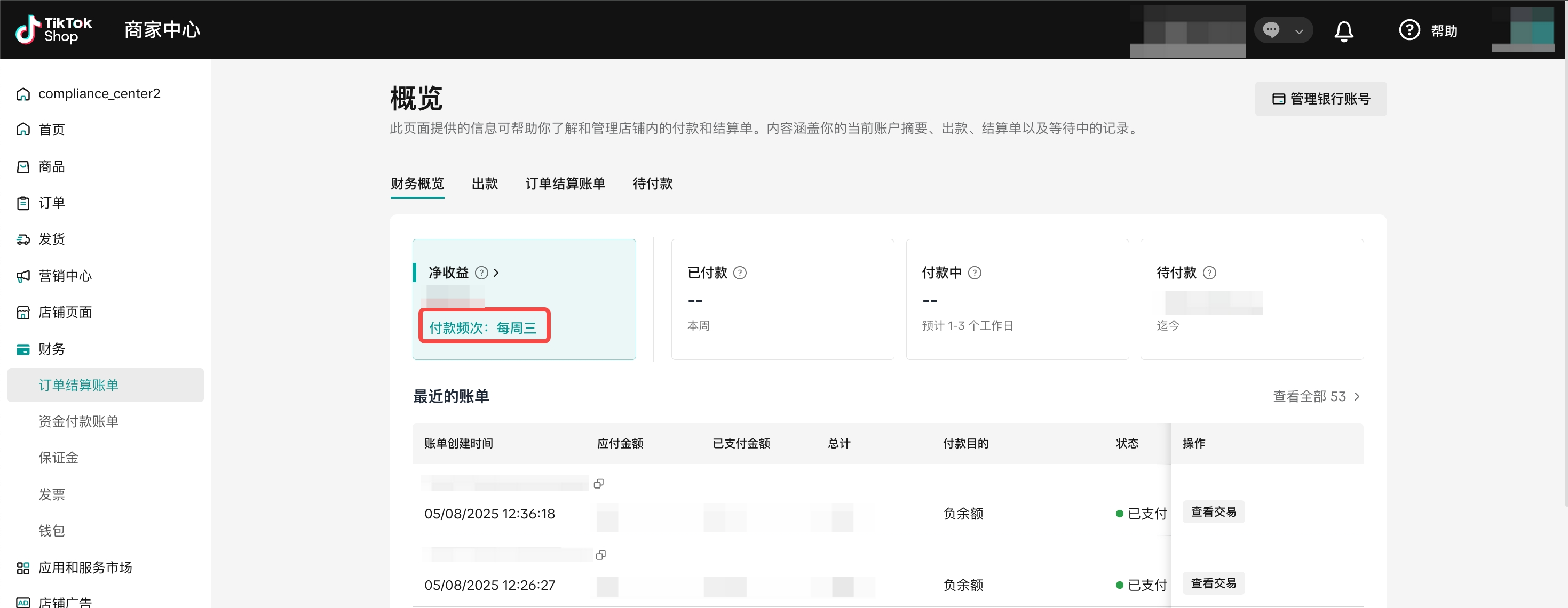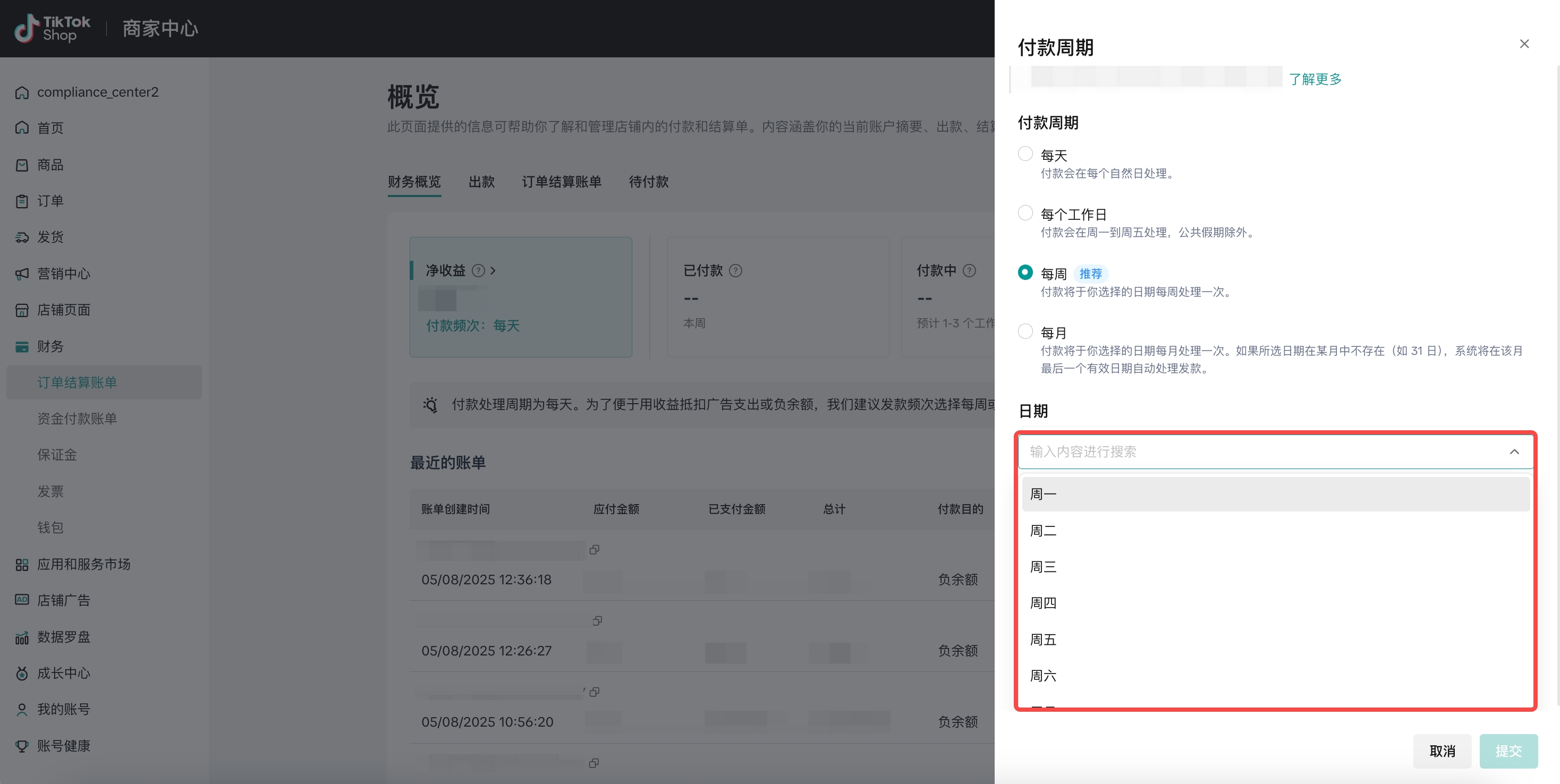 当您设置非每日的付款周期(如每周或每月)时,TikTok Shop 仍将按照《付款结算期(英国跨境)》将款项结算至您的店铺账户。