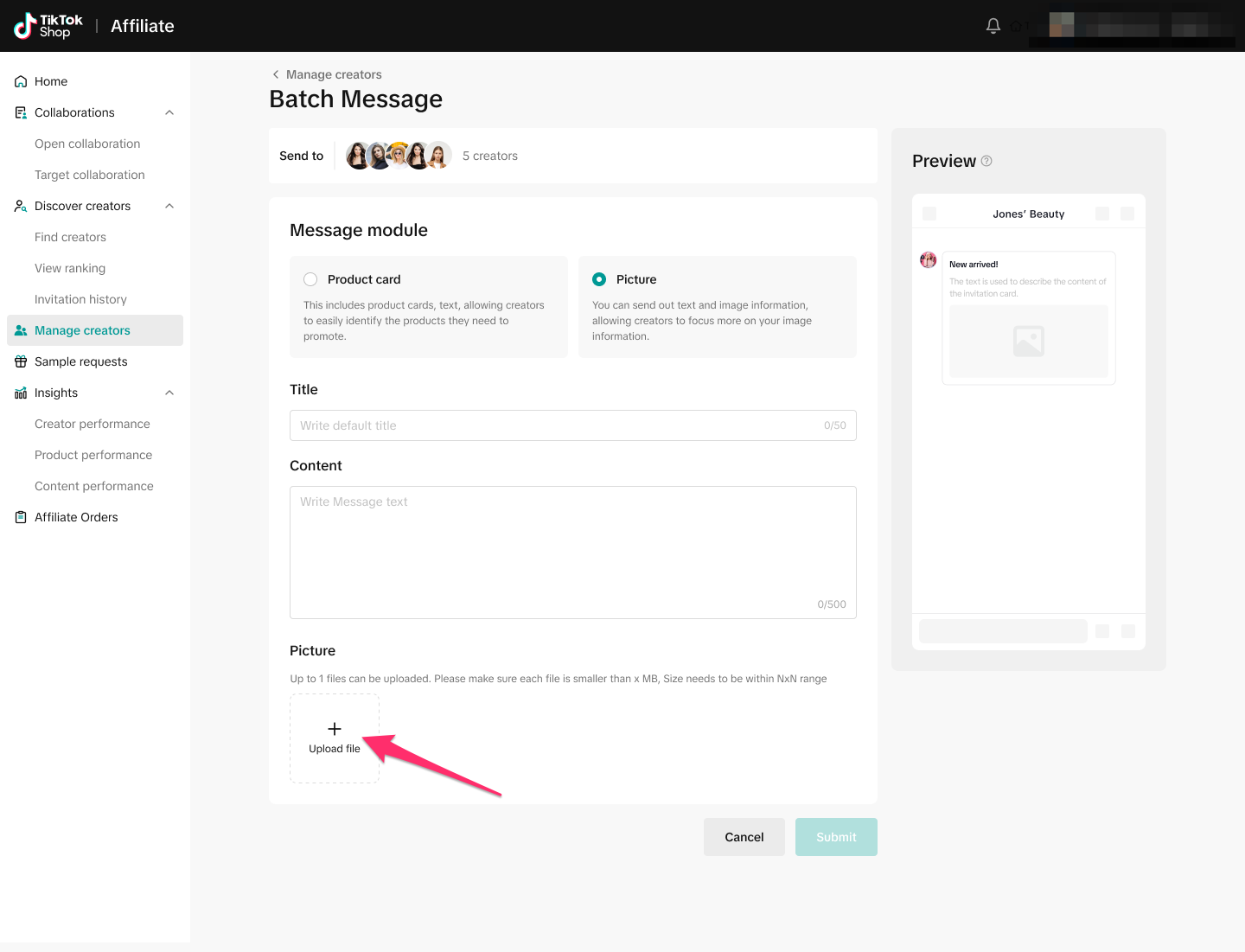 第 6 步: 「批量上传」工具有助于导入您在其他平台合作的达人: