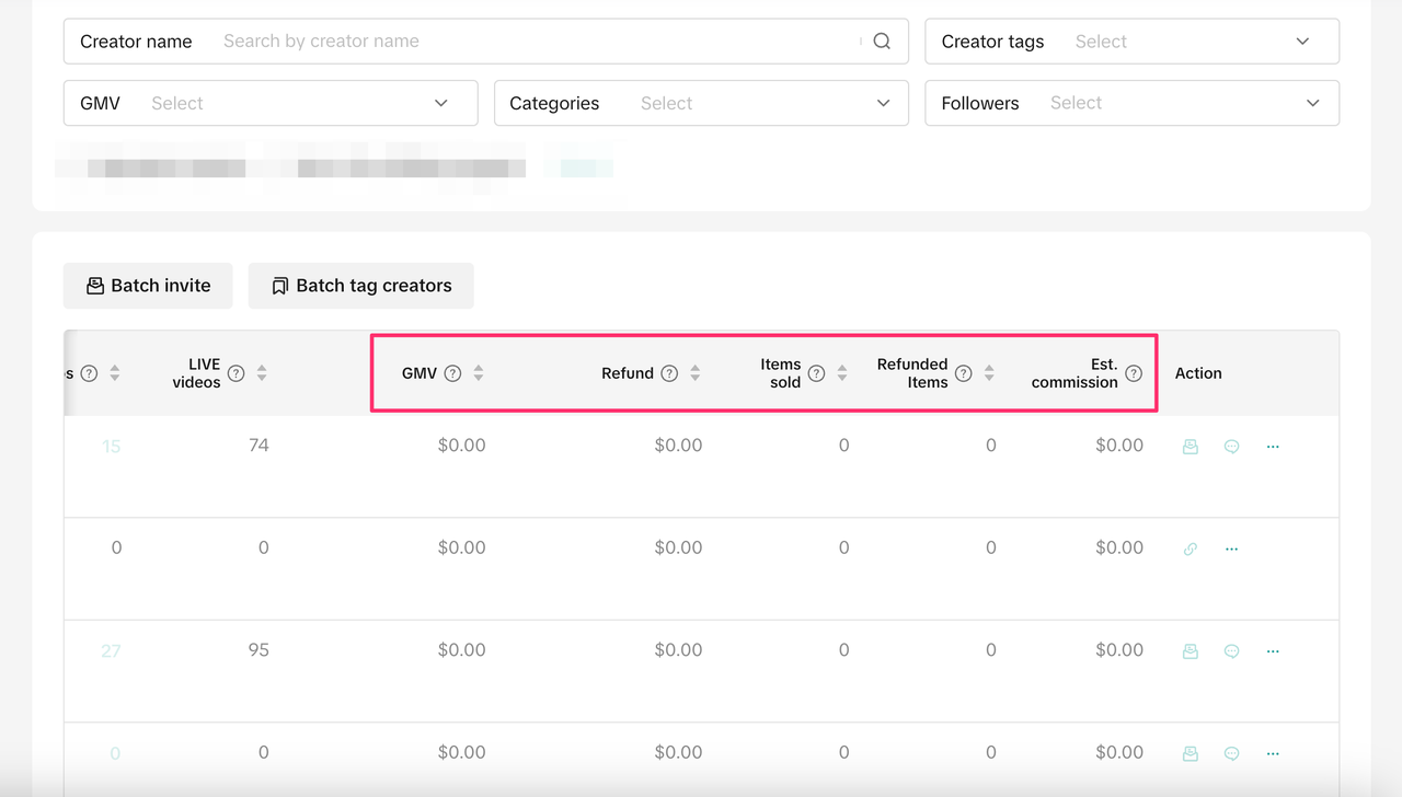 GMV: 过去 90 天内该达人为您店铺产生的 GMV。