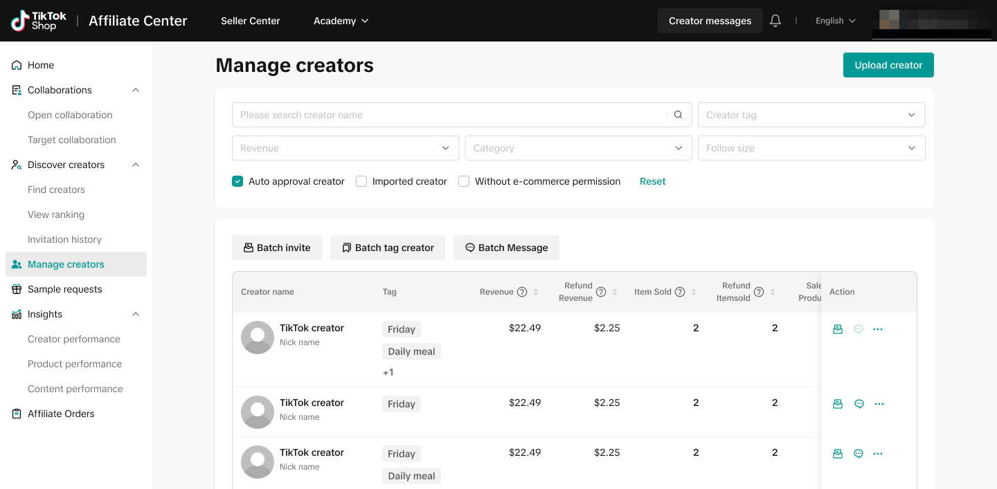 Affiliate Center 中的「达人管理」功能简介「达人管理」是 Affiliate Center 内的一个达人关系管理工具,它允许您达人管理合作的诸多方面。使用「达人管理」具有以下优势:
