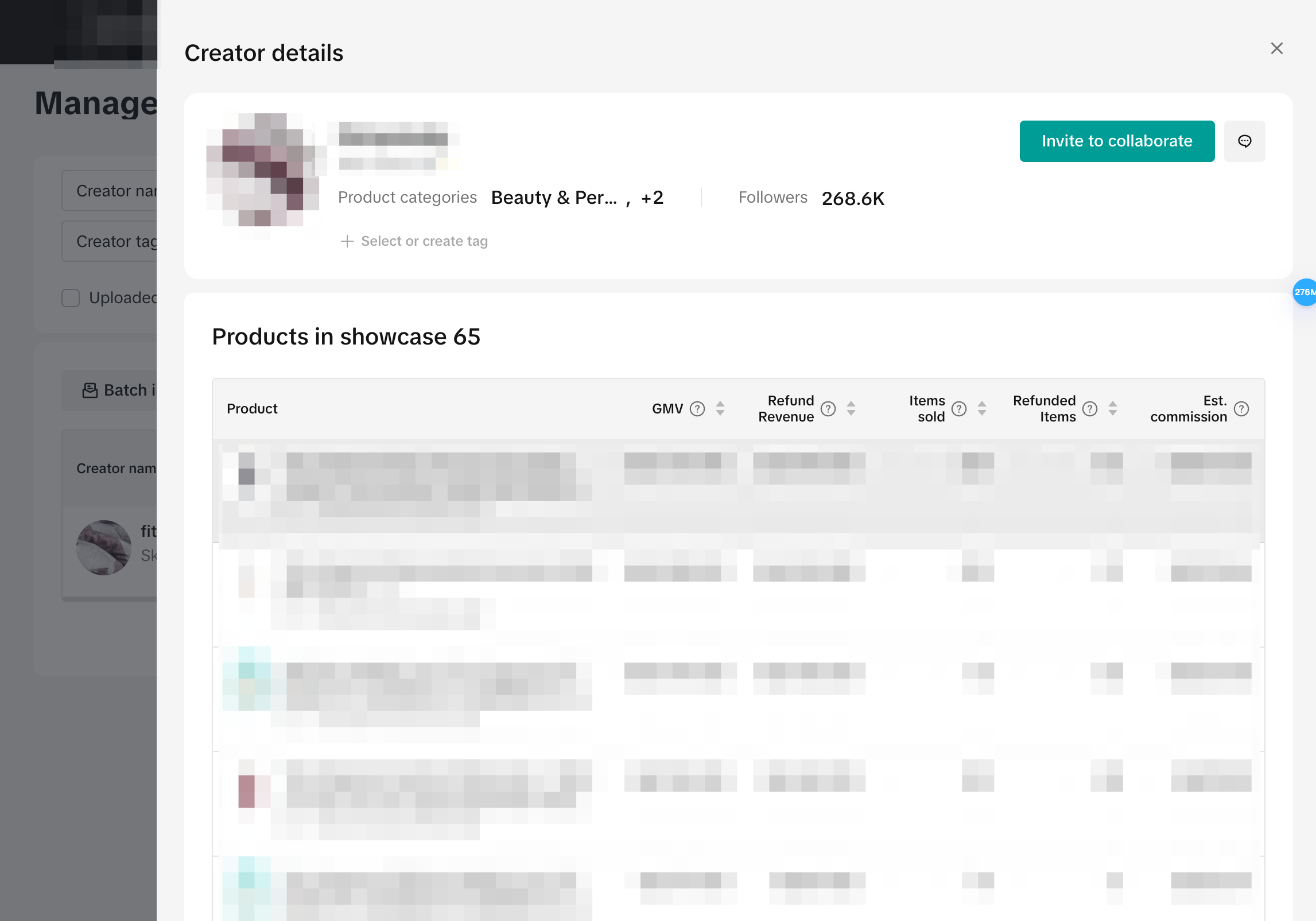 | 我移除了该达人,但他们仍在推广我的产品。为什么? | 当你在“达人管理”中移除达人时,它只会从本页面移除他们,但不会从合作中移除他们。你需要去开放或目标合作页面,将达人从合作中移除 |