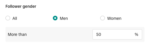 - 粉丝性别:根据达人粉丝的性别进行筛选,您还可以设置性别比例。