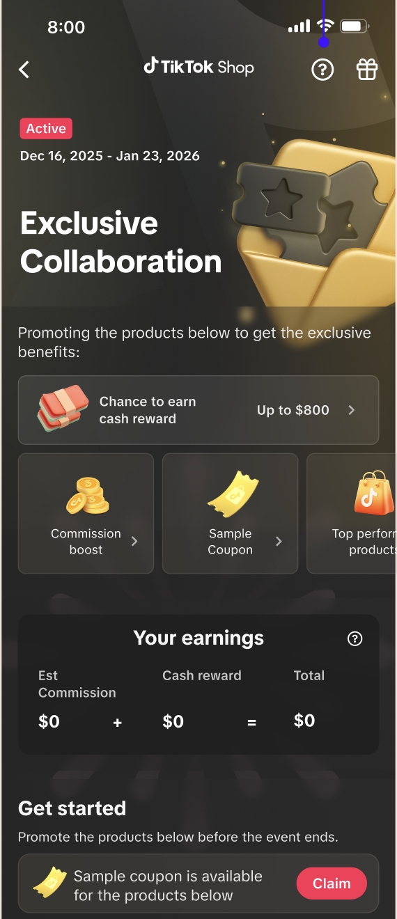 这是一项专属的邀请制活动,将您的产品与顶尖表现达人连接起来以推动销售。我们会根据您的产品匹配具有良好业绩记录的达人,并提供营销支持以帮助他们互动并放大其内容影响力。