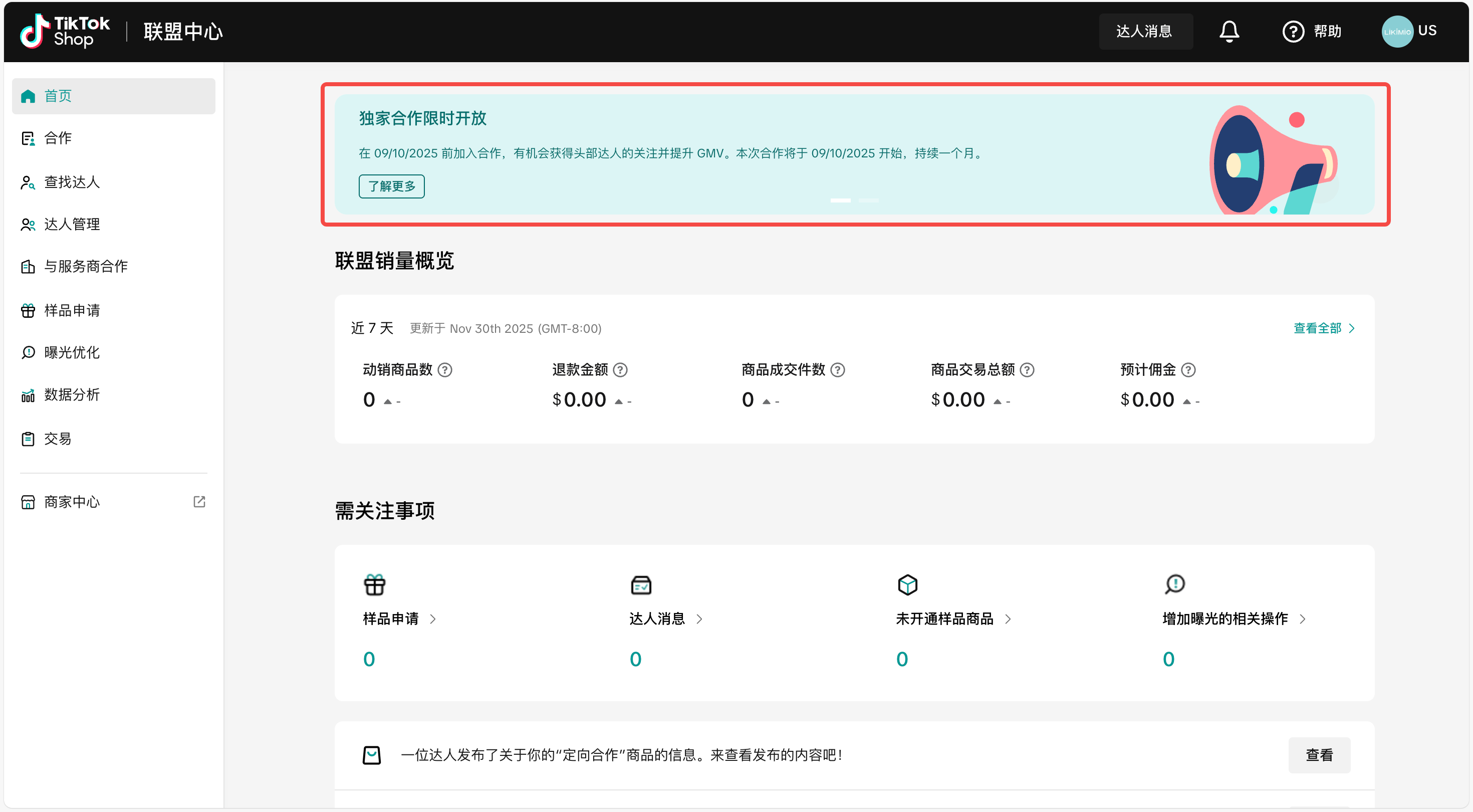 平台提供多个便捷入口——您可以通过联盟中心首页的横幅、联盟中心/定向合作页面的横幅,以及收件箱通知和电子邮件提醒找到请求。