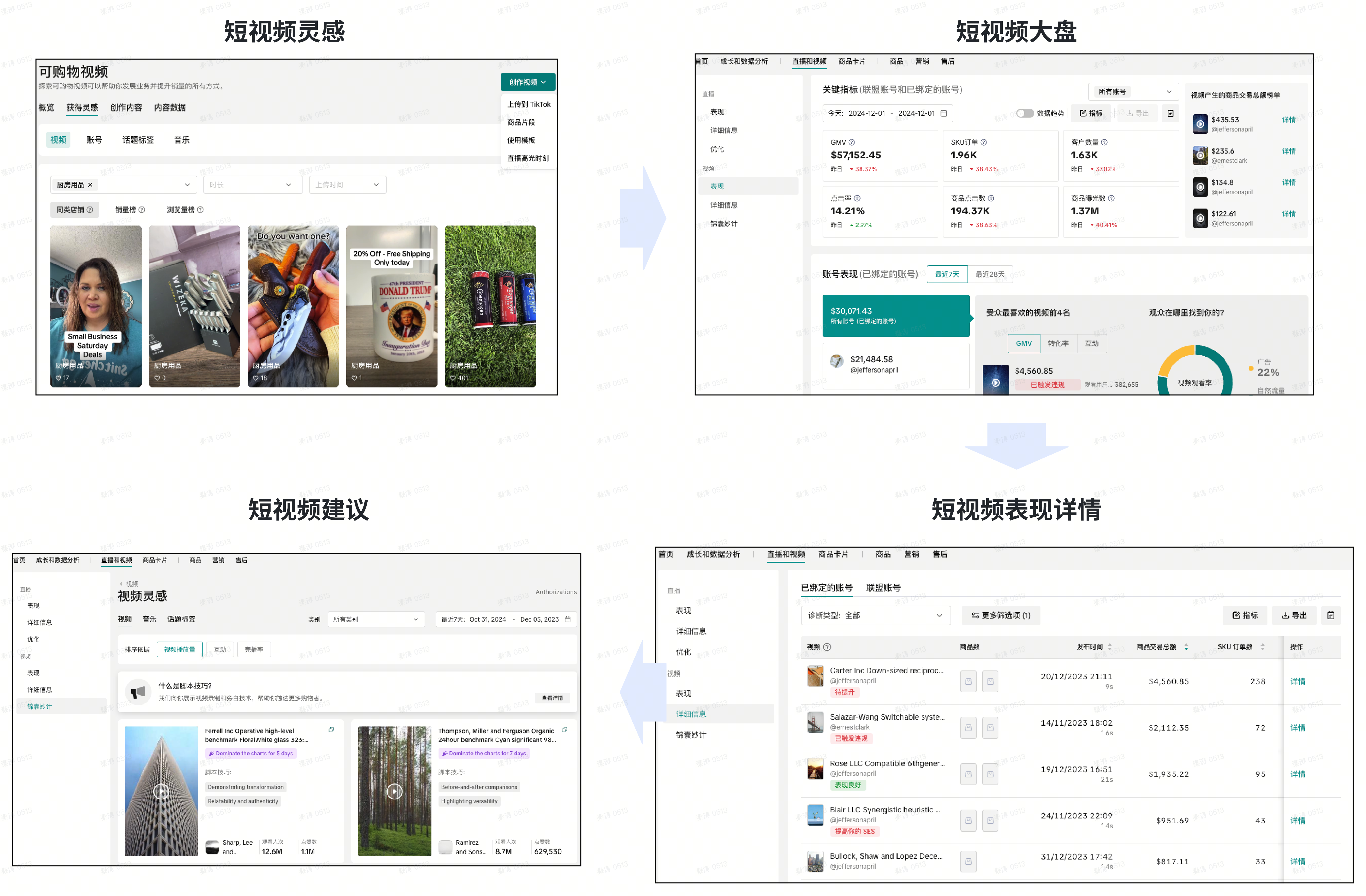 | Step2:短视频详情 | 提供短视频的实时流量/转化/成交的数据 | |