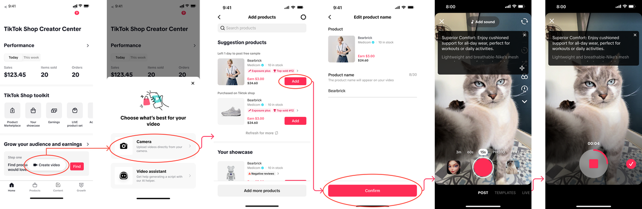 进入TTS创作者中心,点击“创作”,选择“相机”,并将产品链接到视频;