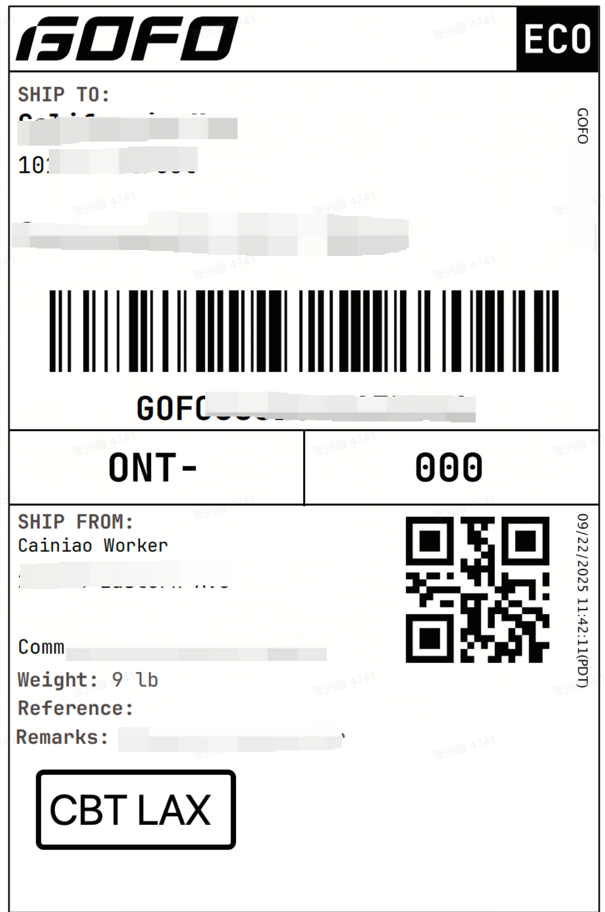 CBT 面单模版-OnTrac![]() ![]() | CBT 面单模版-UNIUNI![]() ![]() | CBT 面单模版-GOFO![]() ![]() | CBT 面单模版-菜鸟![]() ![]() |