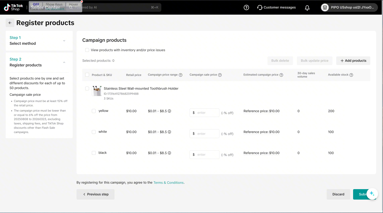 系统提供 Standard Registration(基础大促价格+标准权益)和 Advanced Registration(更深折扣,可进入秒杀、Premium Offers、清仓等高曝光渠道)。