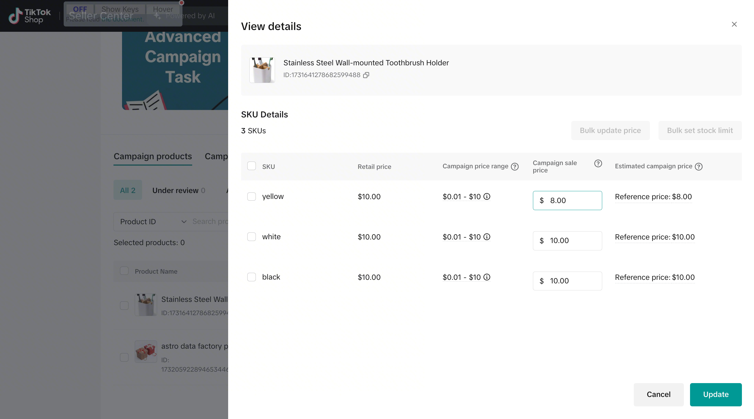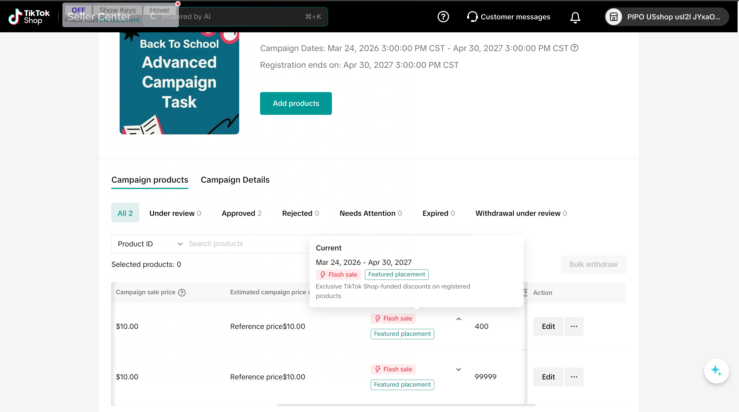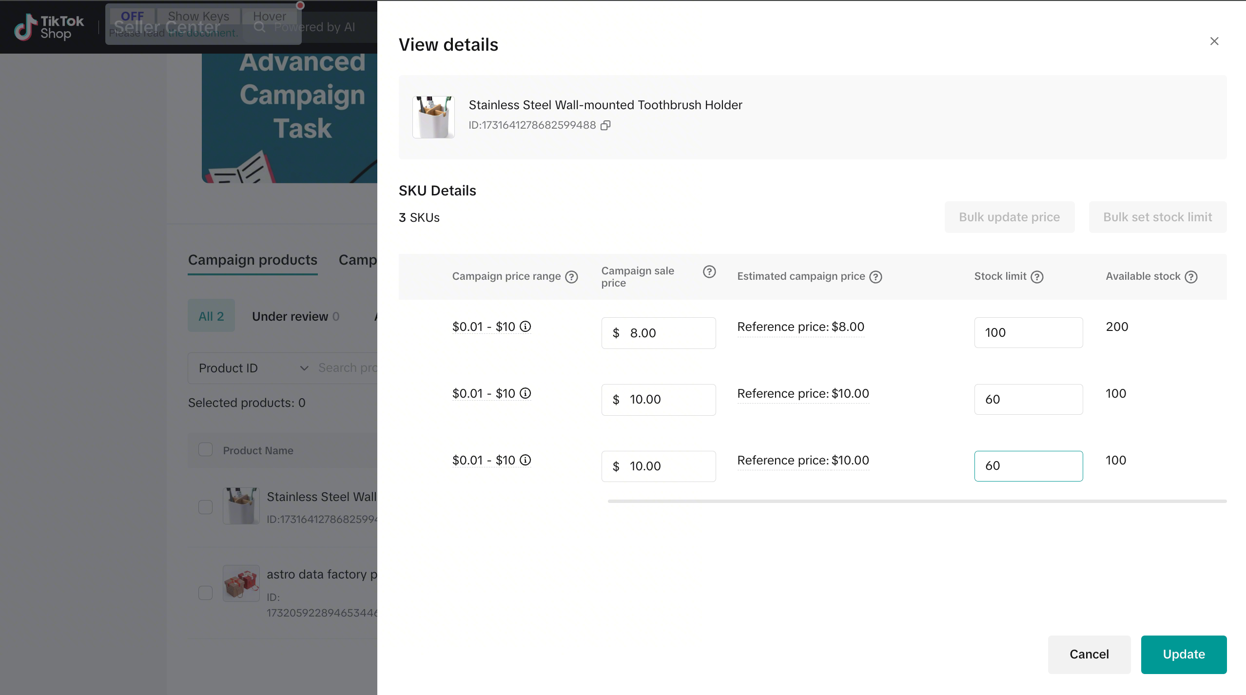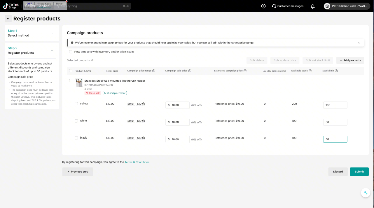 - Advanced Registration:请设置库存上限:即您允许以本次大促报名价售出的商品最高数量(仅影响该大促)