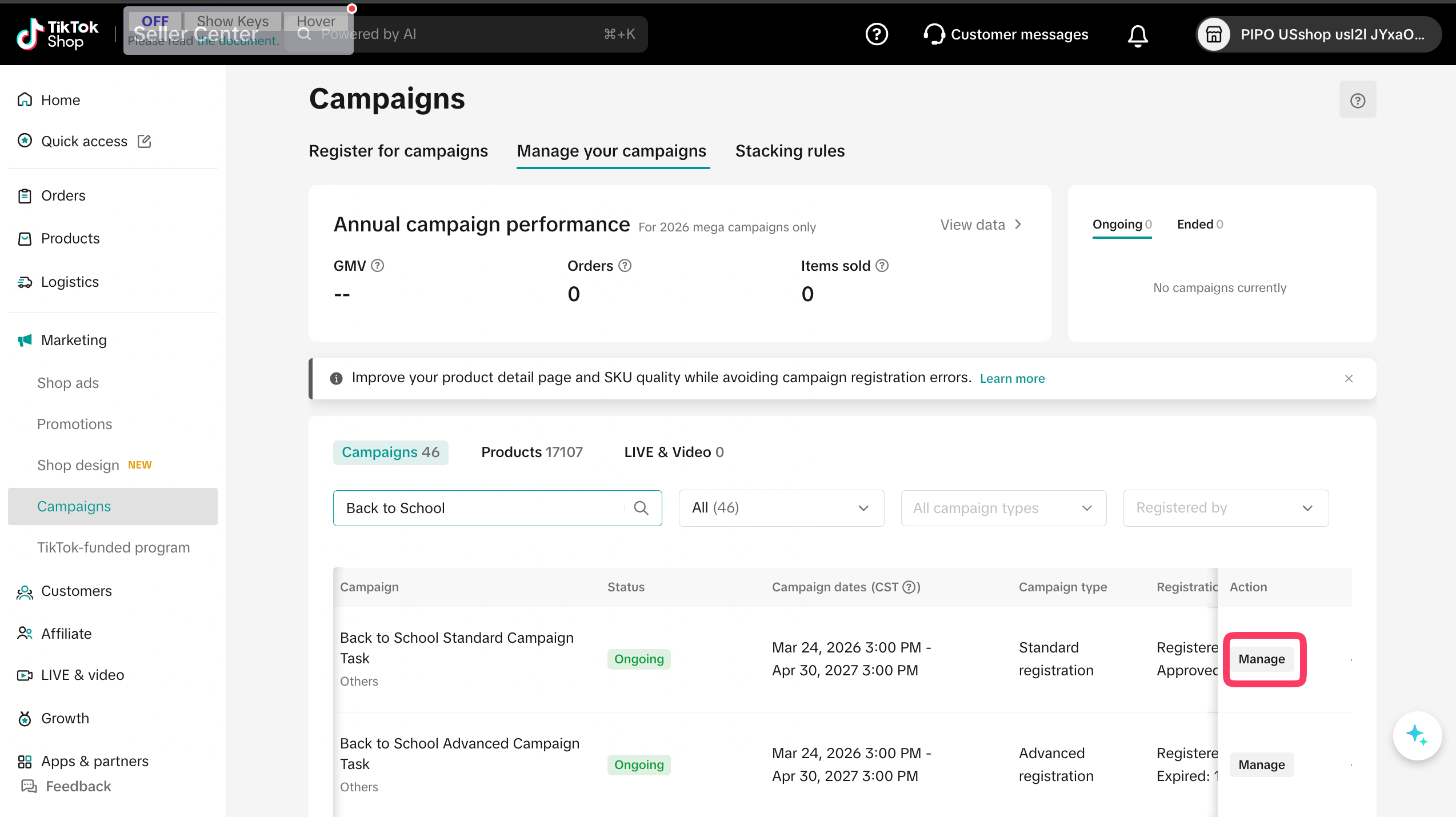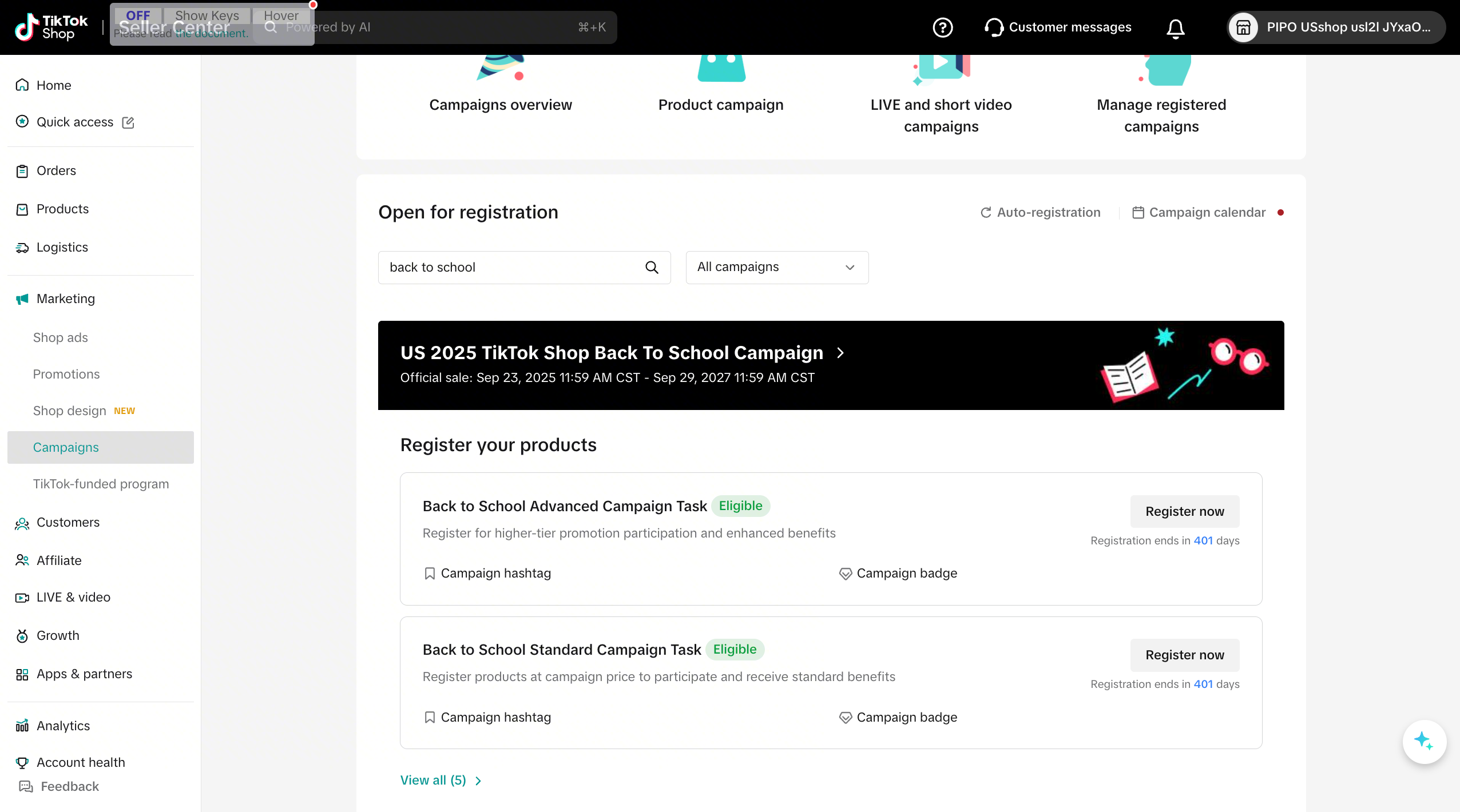 简化报名是一项用于简化商家参与 TikTok Shop 大型营销大促流程的功能。商家无需再分别报名多个子大促(如秒杀、Premium Offers、清仓等),现在只需通过两种主要报名方式即可完成报名:Standard Registration 和 Advanced Registration。这可以减少报名时间,同时为不同任务等级提供清晰的权益。