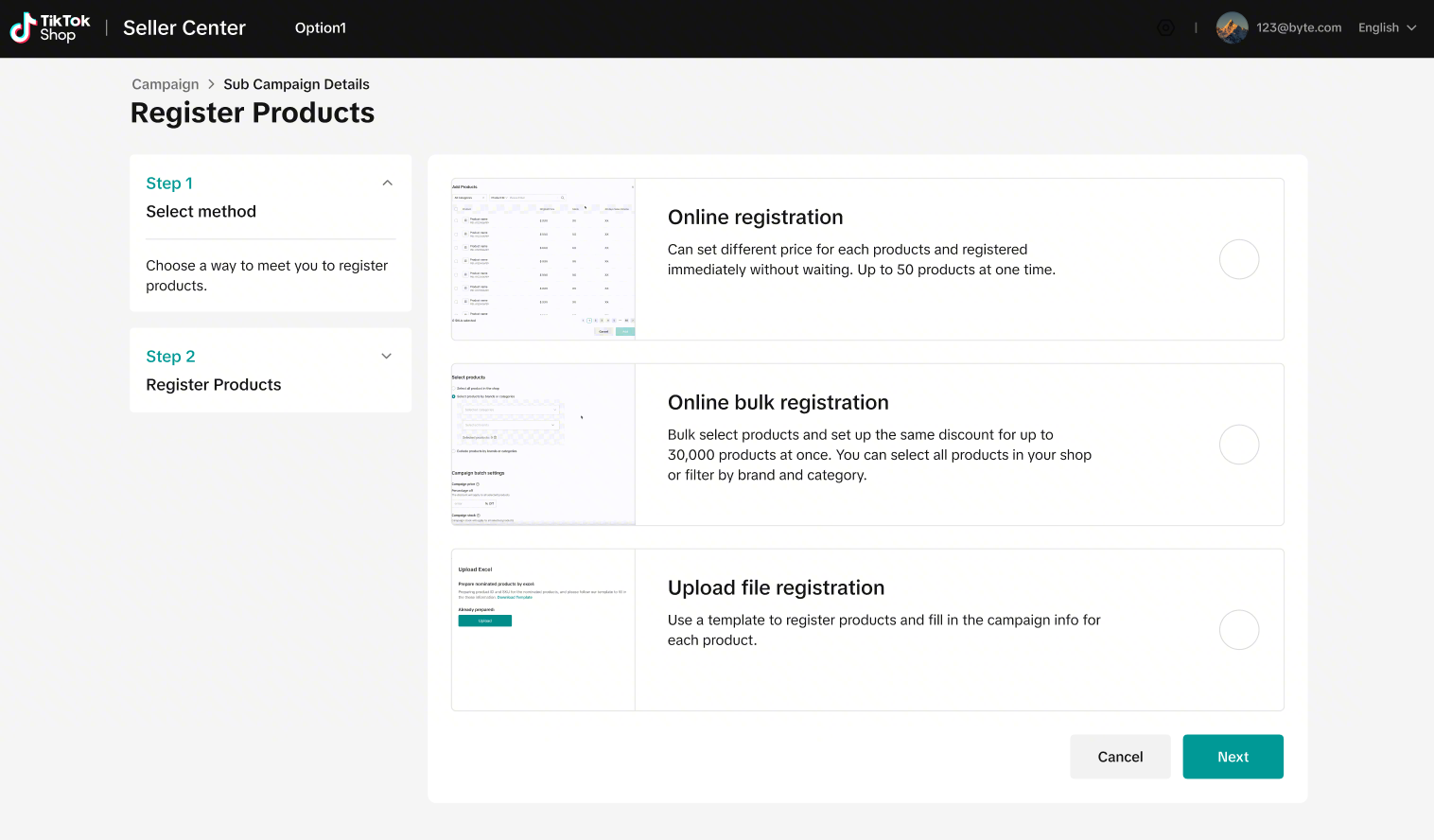 答: Standard Registration可让您以基础大促售价享受标准权益,而Advanced Registration需您设置更高的折扣,以此兑换升级权益(比如平台核心流量坑位、更高额度补贴、秒杀活动的固定参与资格等)。