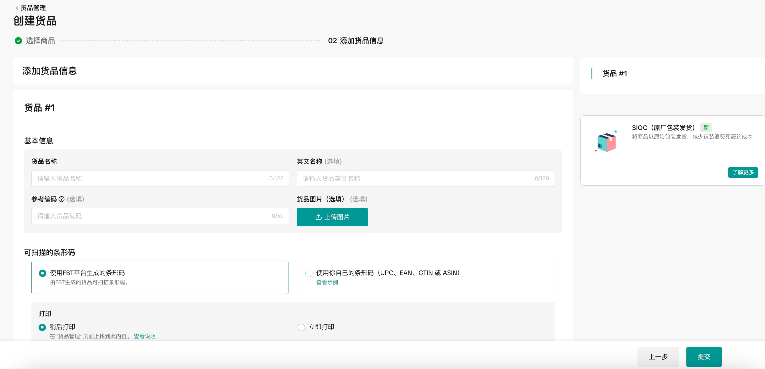 - 创建货品: FBT货主后台 > 货品 > 货品管理
