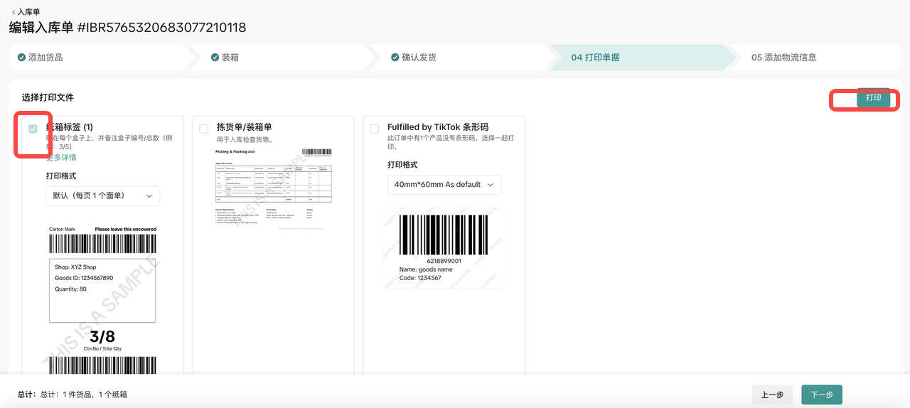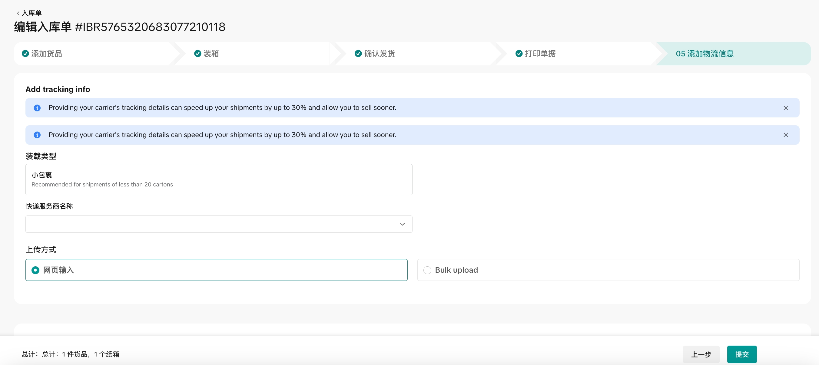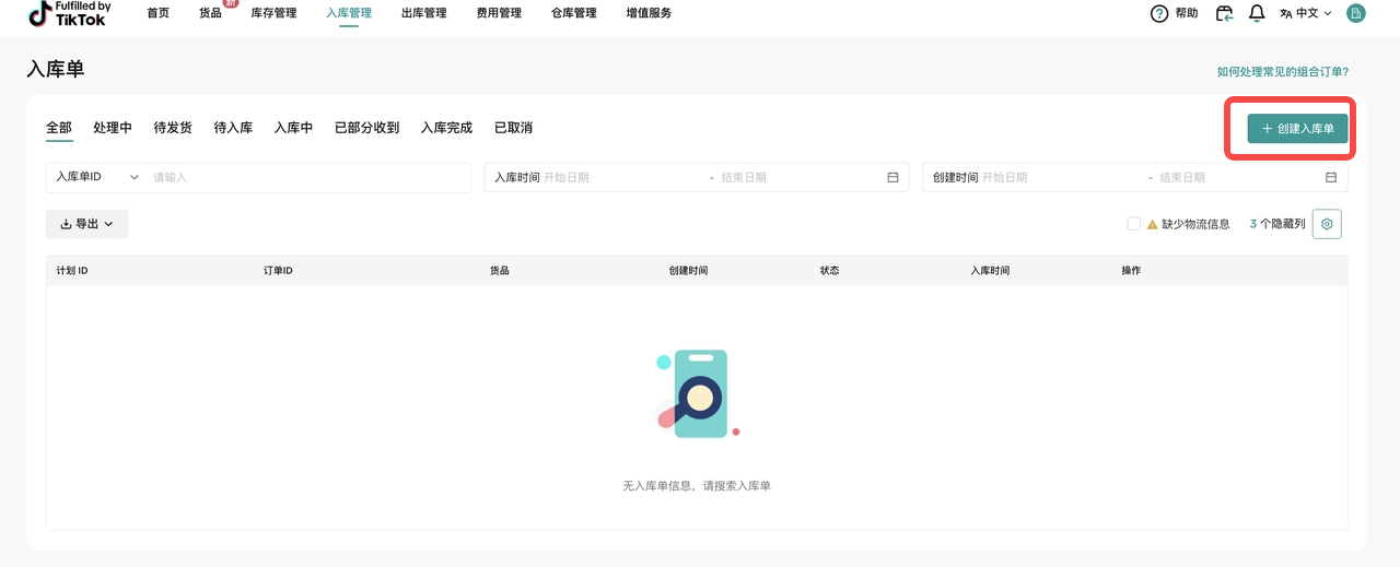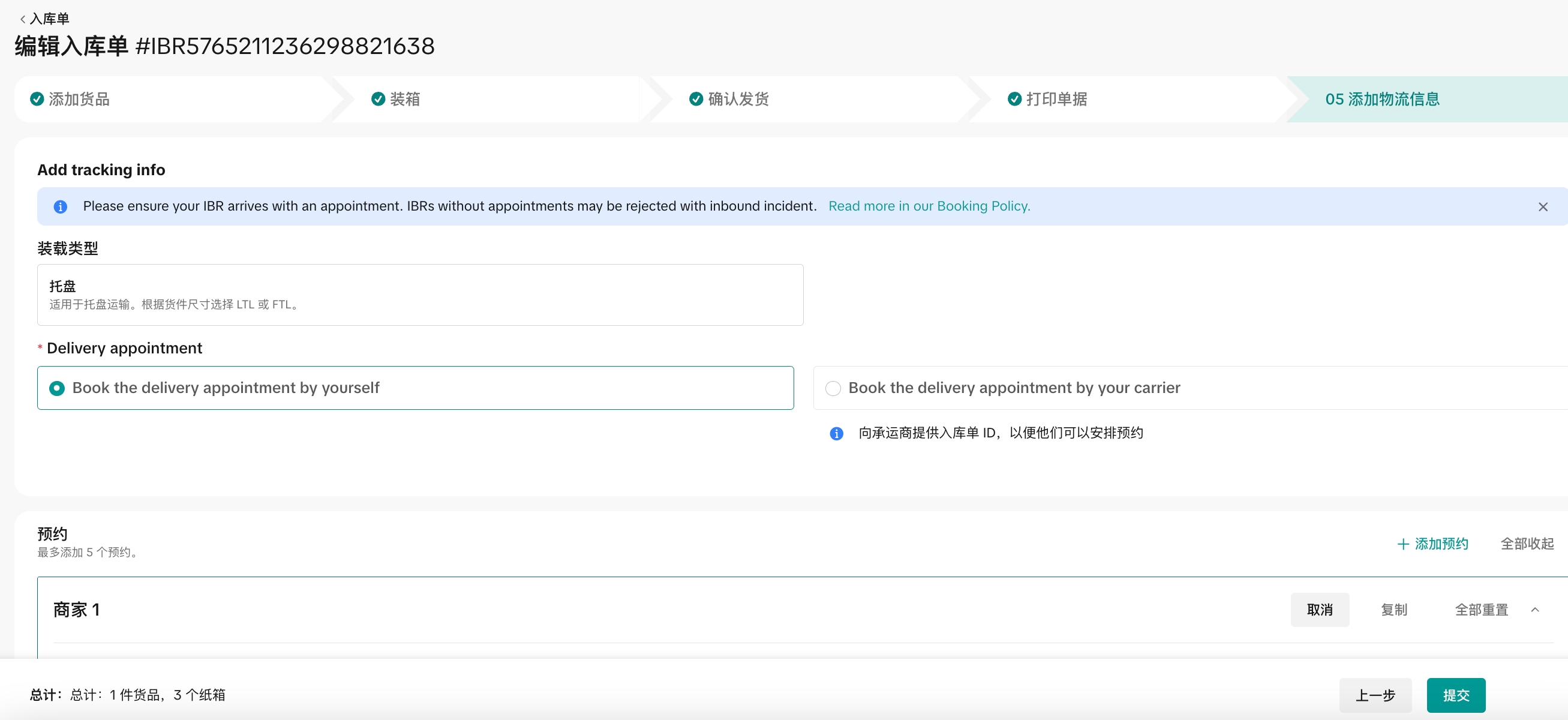 - 创建入库单: 货主平台 > 入库管理 > 备货入库单