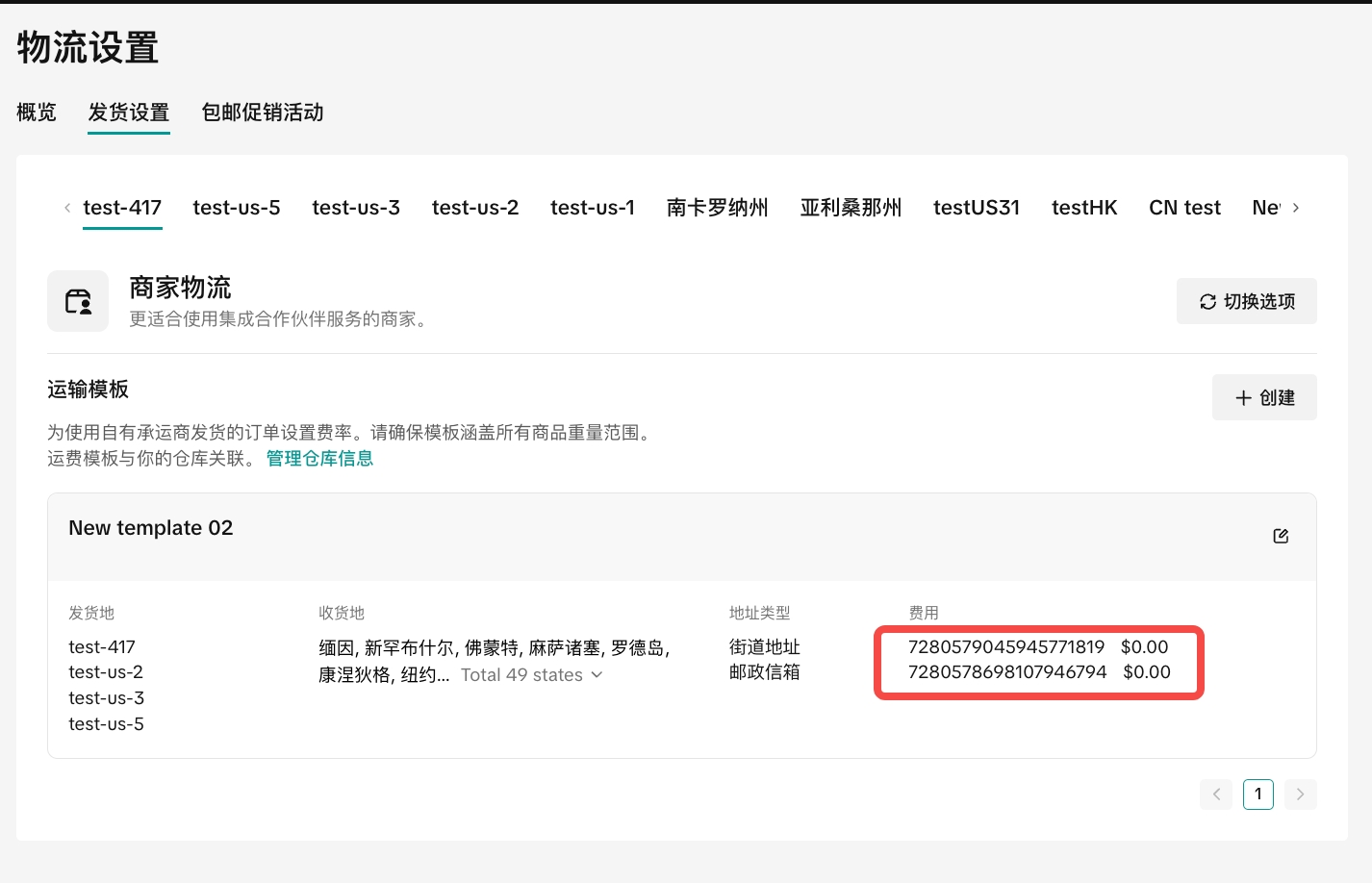 - 前往商家中心 > 物流 > 运费 > 物流模板