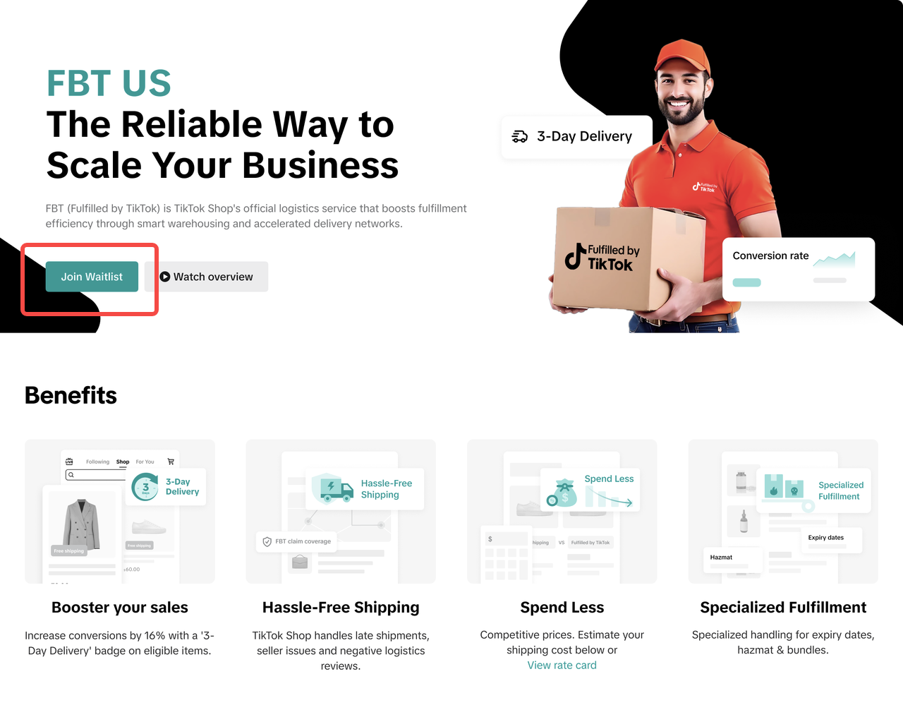 - 商家中心 > 由TikTok履约 > Get Started / Join Waitlist ,