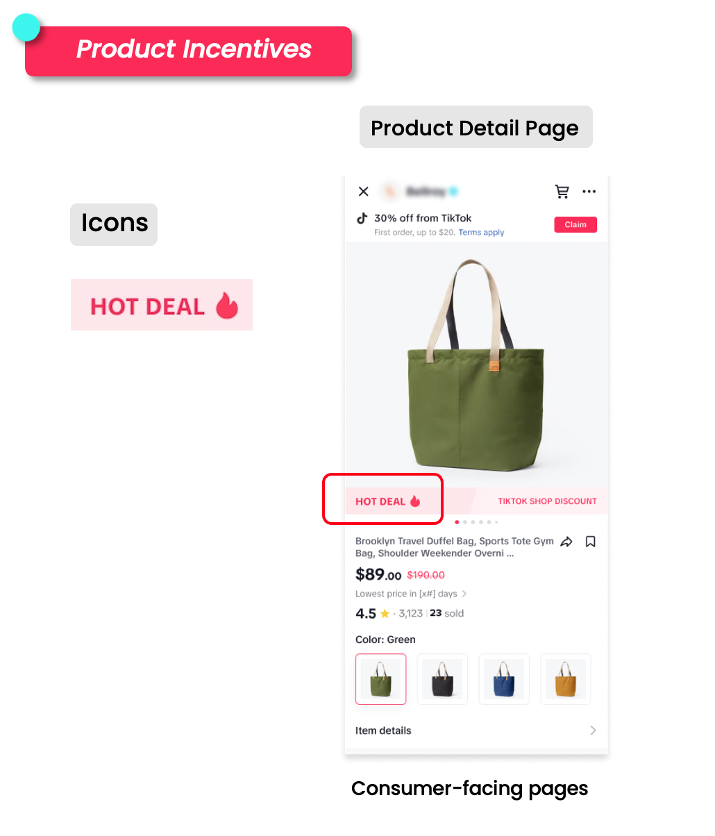 您可以打开TikTok客户端,通过消费者视角查看商品获得了TikTok的哪种补贴。每一种TikTok出资的促销活动都有自己的标签,可在商品详情页、直播间购物袋、橱窗等场景下通过对应标签辨别出平台提供的促销活动。您可在下文中了解不同的标签样式。