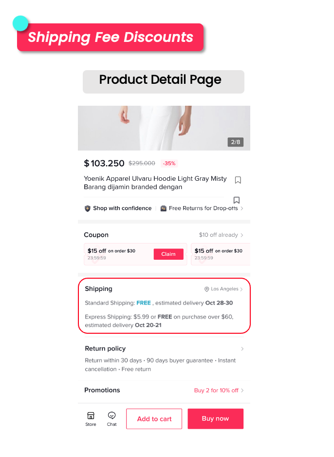 TikTok出资的运费折扣为消费者提供免运费或减免运费的服务。在结账时,符合条件的订单可以享受此优惠。该运费折扣可以与您的所有促销活动一起使用。在计算运费时,TikTok出资的折扣将首先被扣除,如果在此扣除后仍有运费剩余,则抵扣商家提供的运费折扣。