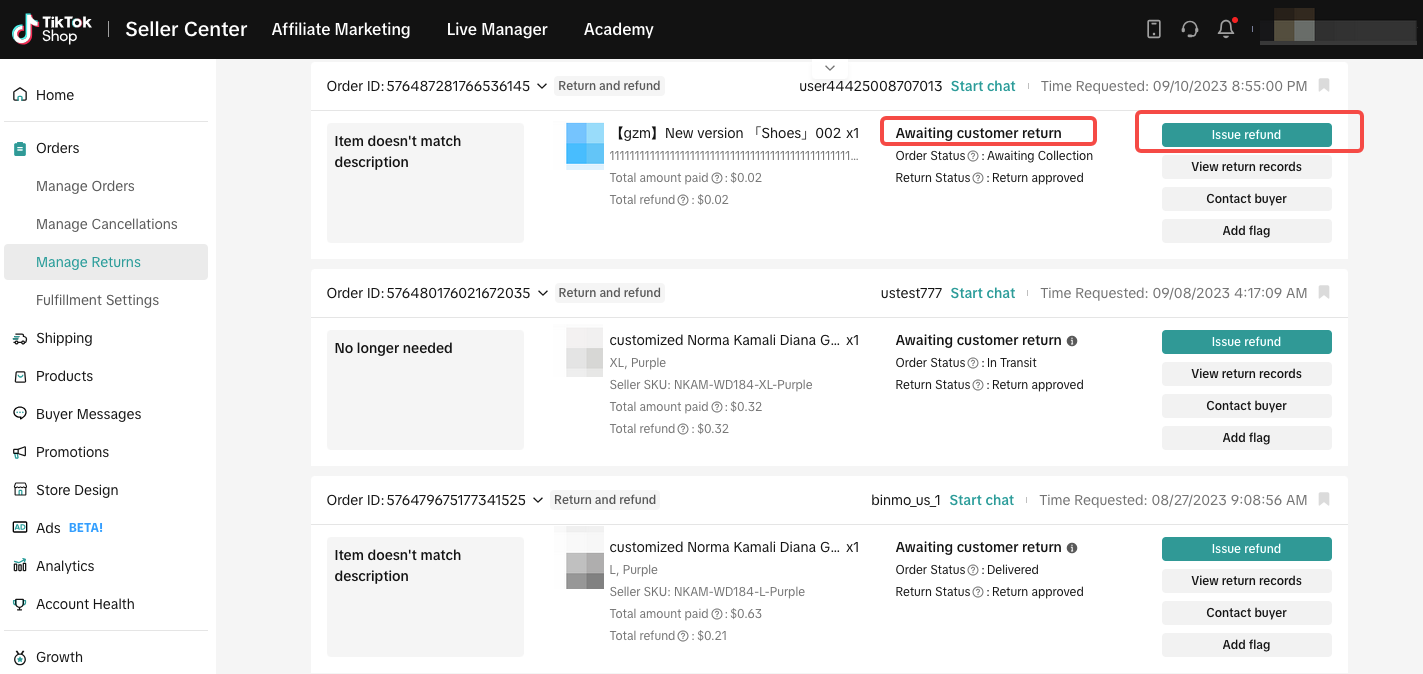 我们重新调整了退货管理页面的标签页结构,使退货/退款订单的处理更直观便捷。