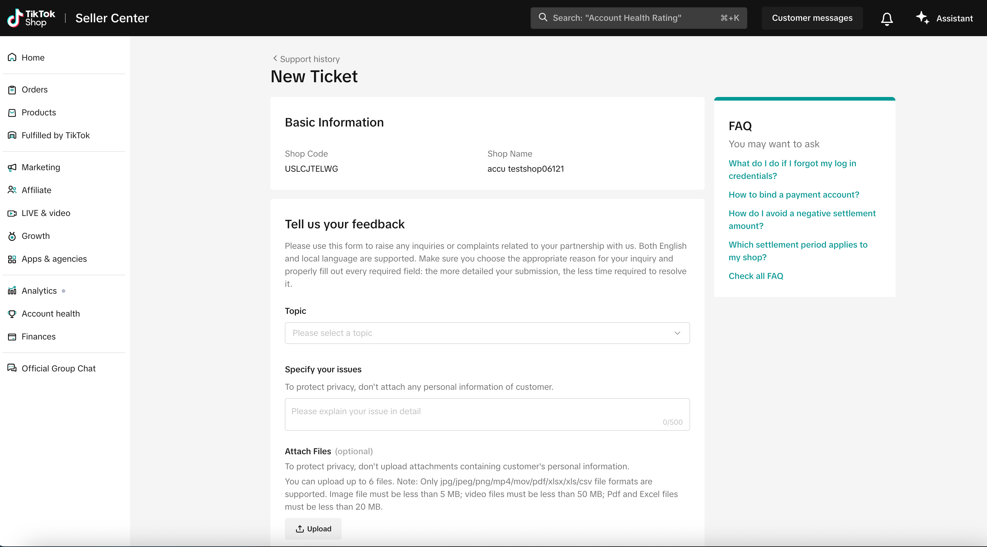 报销金额可能需要长达2周时间才会显示在 Seller center-Statements / FBT系统-Billing center。如果2周后商家仍未在账户中看到报销费用,请创建一个工单,并引用最初获批报销的工单ID,以便TikTok客服审查该问题。请为工单选择合适的标签:
