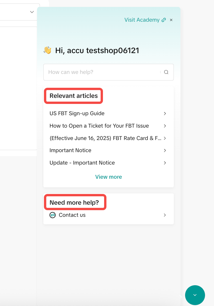 | 2 | – 商家大学文档:可使用搜索栏查找商家大学文档,这些文档可解答许多常见问题 – 联系TikTok客服:如果您仍需要帮助,请点击Need more help > Contact us | ![]() ![]() |