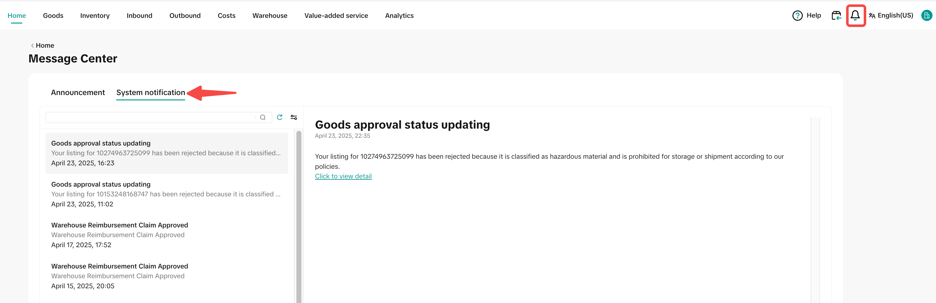 | 1 | 报销结果通知 | 报销结果确定后,商家将在FBT系统的 Message Center 收到通知 | ![]() ![]() |