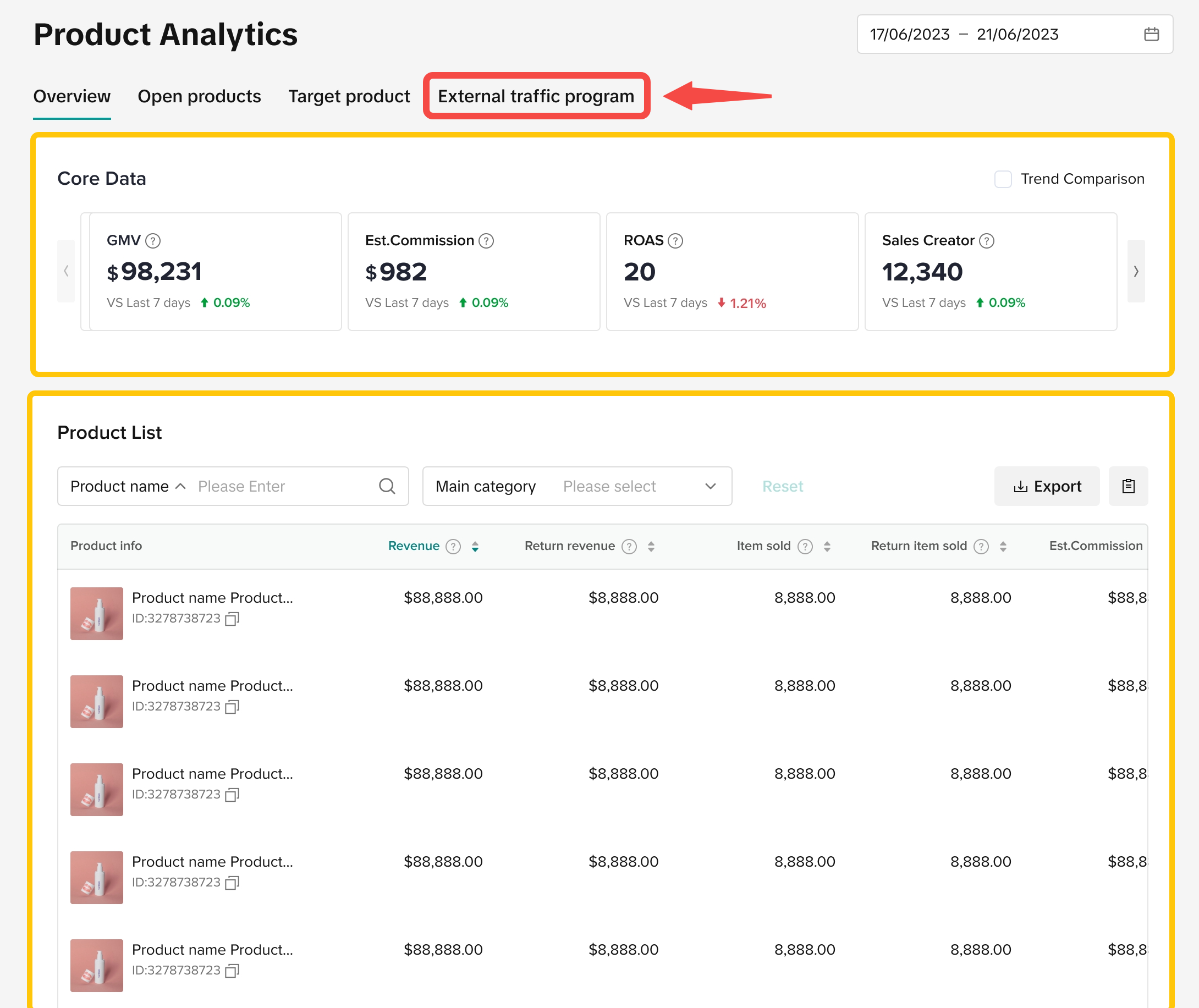 以下是两种通过产品层面和达人层面分析整体外部流量计划表现的方法:
