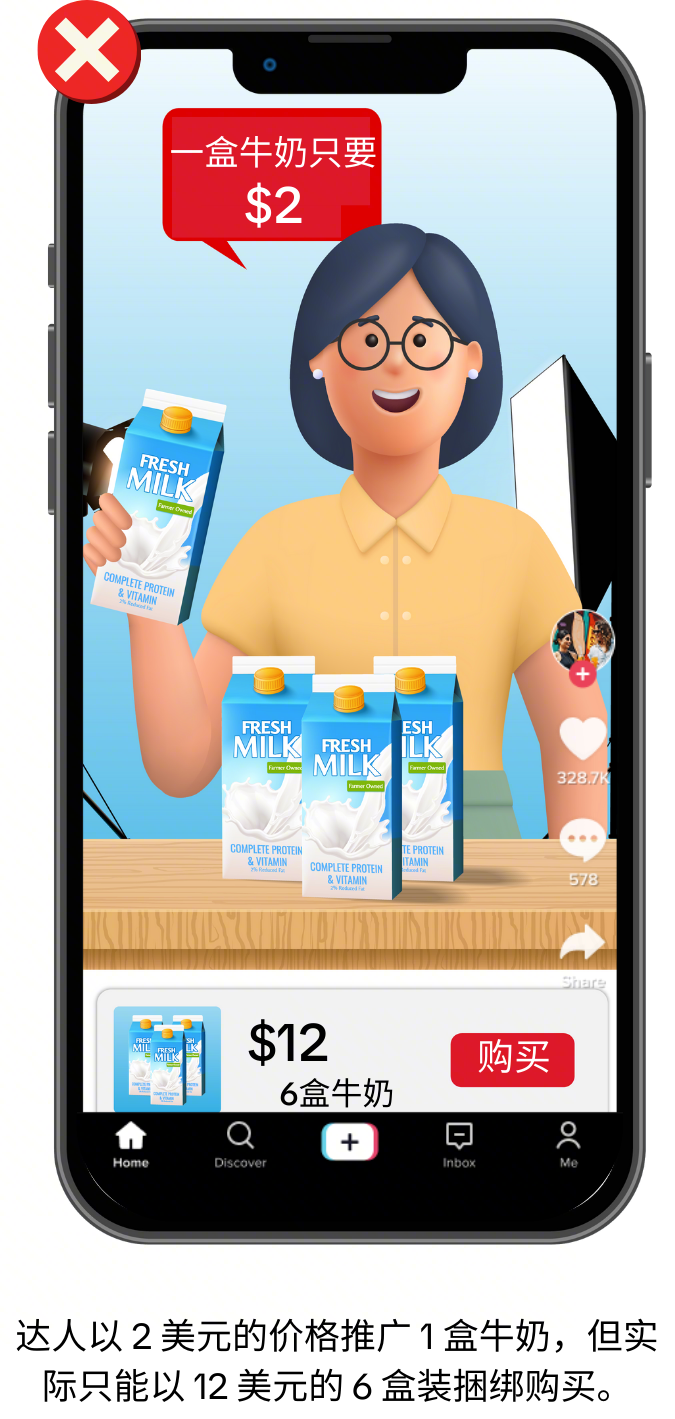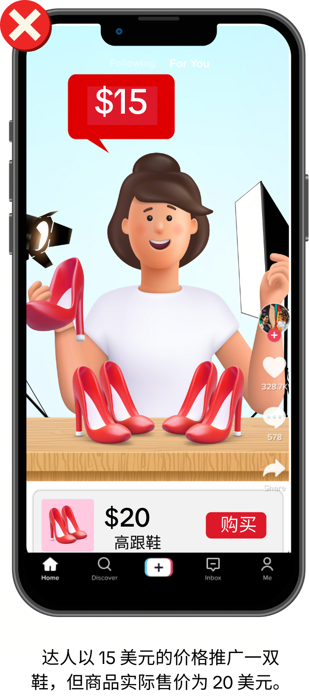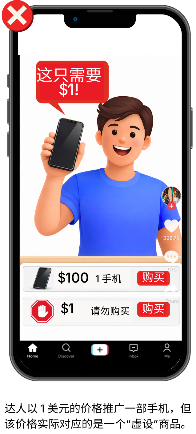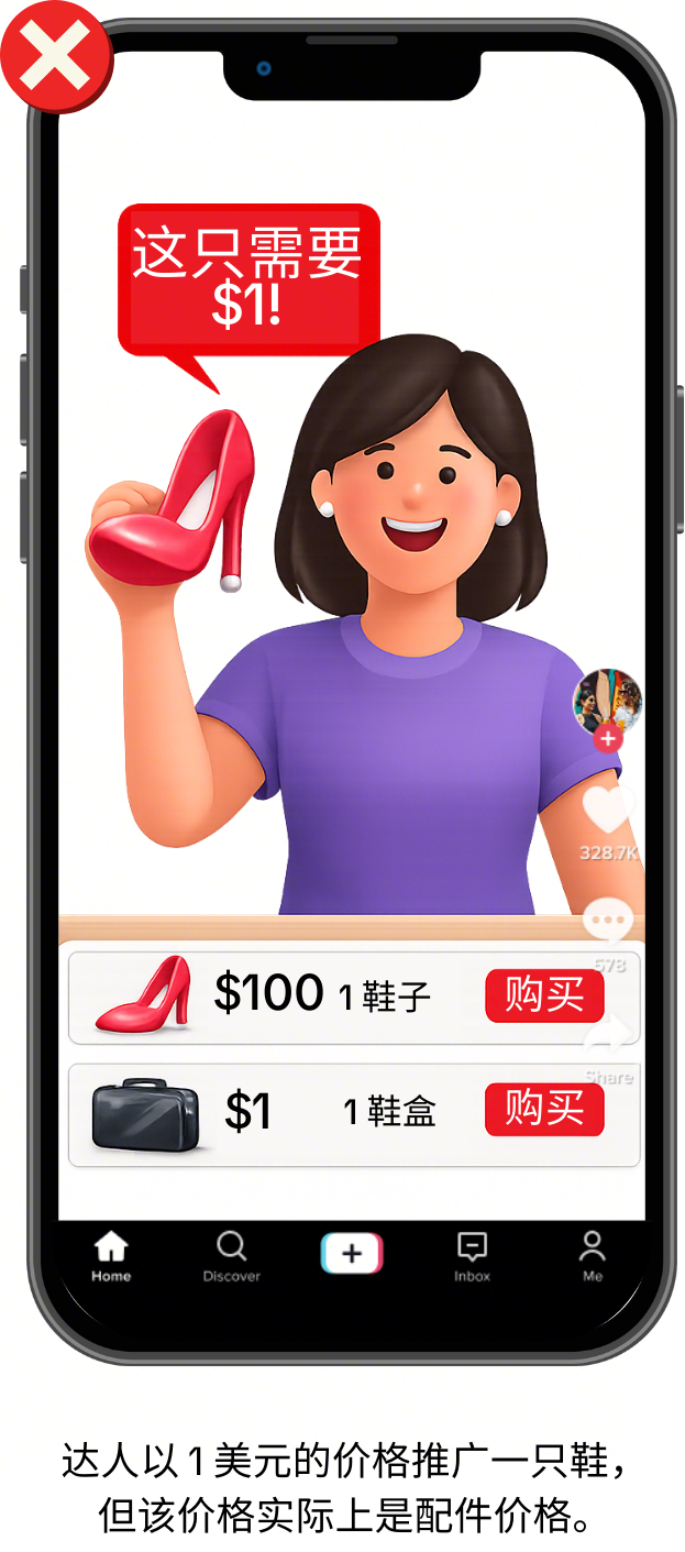 达人必须避免用虚高价格或虚假声明来误导观众。所有的价格信息(包括促销和折扣)都应该与实际的商品详情页一致。定价不一致会影响销售业绩,破坏客户信任,造成购物体验不佳。