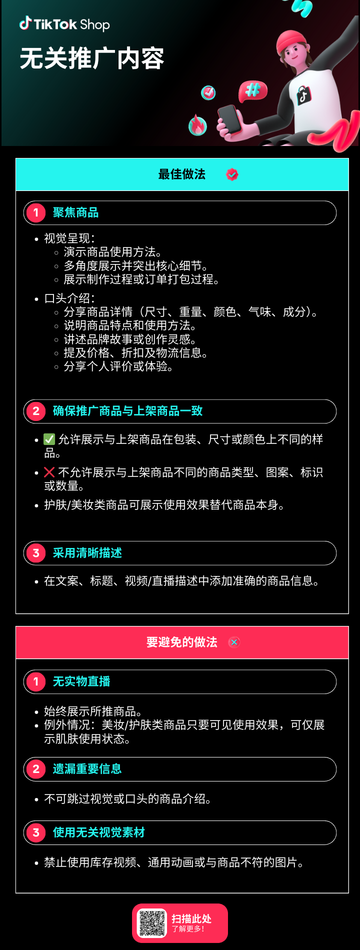 请参阅《TikTok Shop内容政策》,了解更多信息。