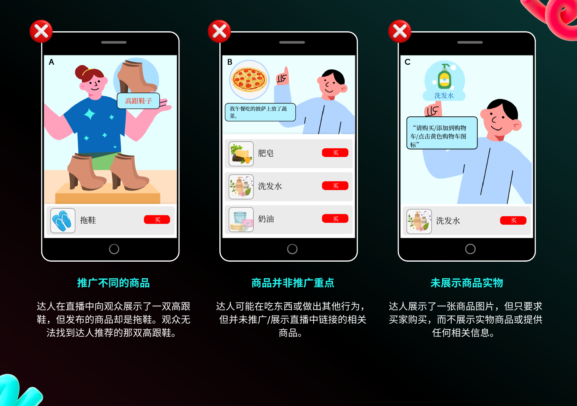 推广的是 A 商品,链接却指向 B 商品(例如:展示的是搅拌机,链接却跳转至平底锅)