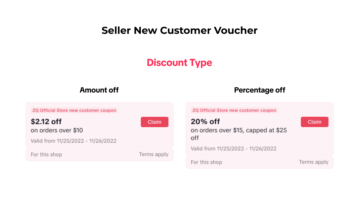 商家新客优惠券是一种商家资助的促销工具,仅限商家新客领取,可在结账时兑换使用。商家通过此工具可以向新客群体提供折扣(可选择设置最低消费门槛),从而扩大买家基数和销量。