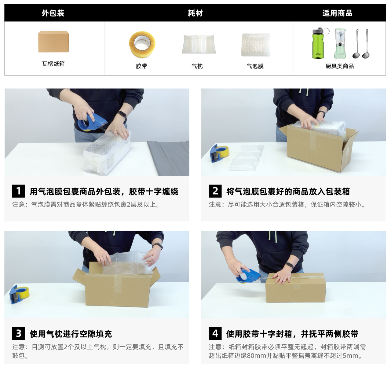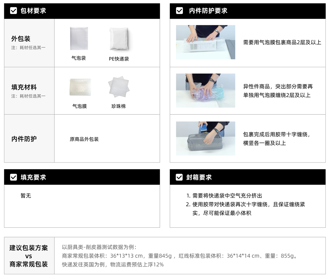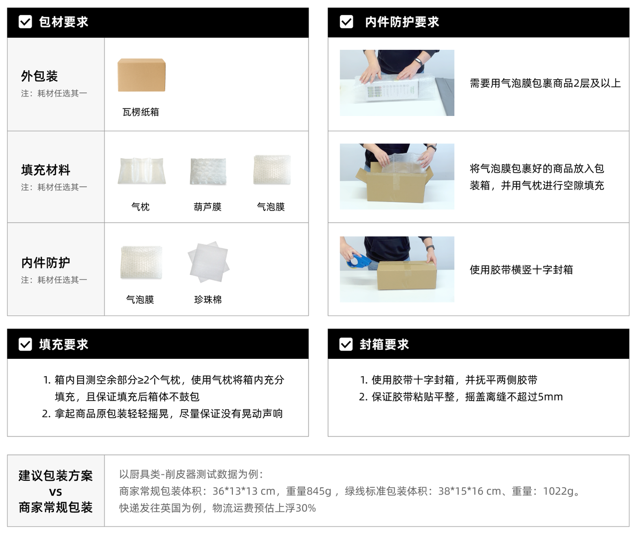 建议包装标准。参照此标准,破损几率低、买家体验好。
