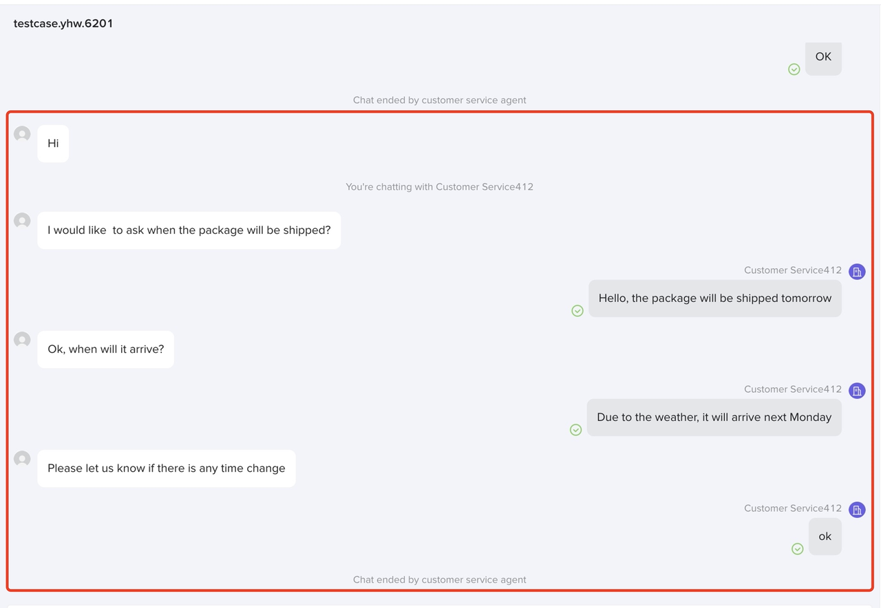 如下图所示(左侧为消费者,右侧为客服),红框中的内容为一次会话。