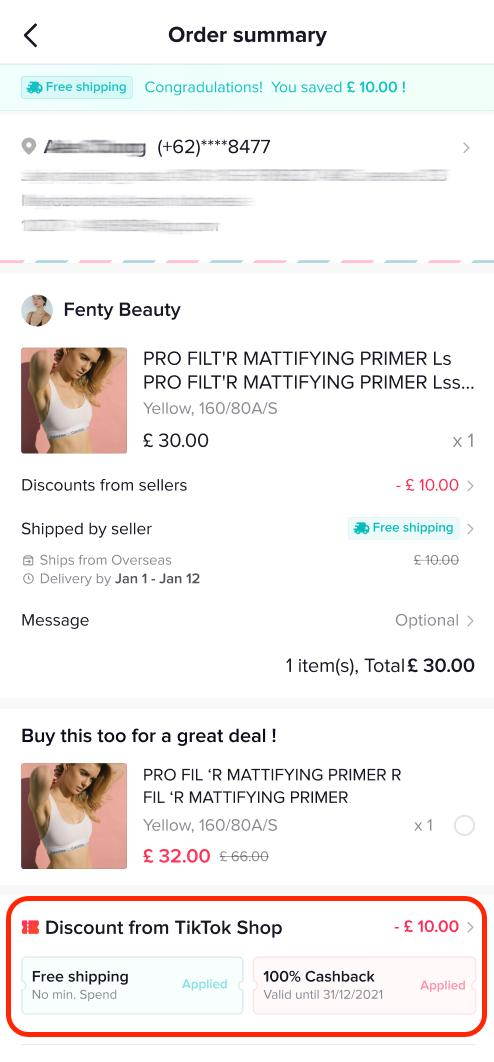在下单界面点击 ‘Discount from TikTok Shop’区域