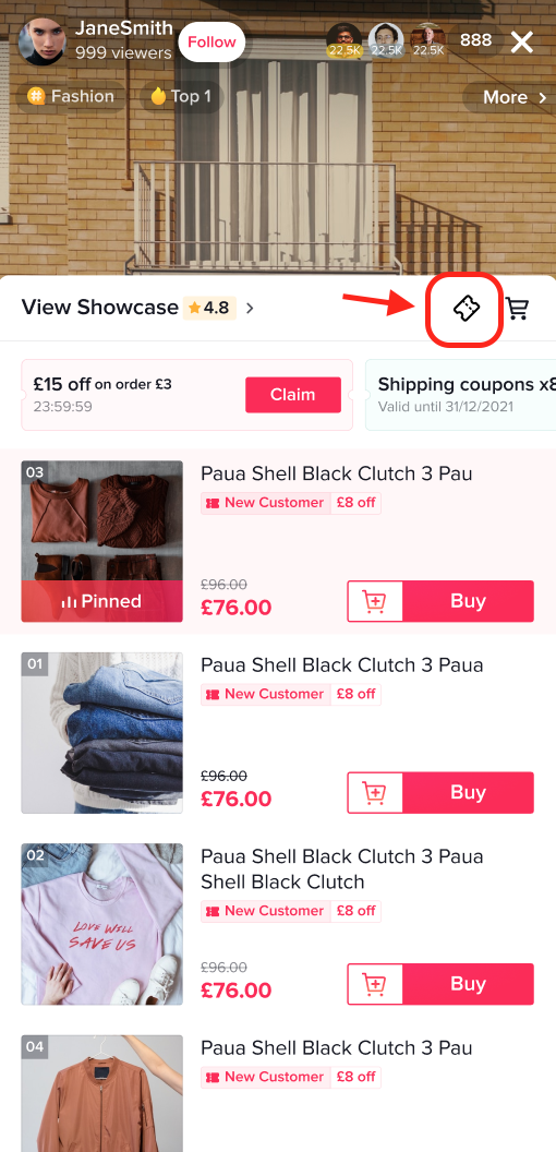 您可以在直播中提醒消费者参与优惠码促销活动以及如何在下单的时候使用
