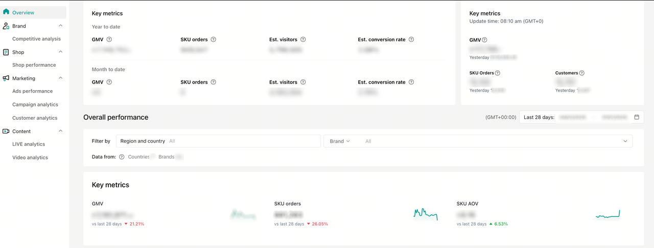 Brand Portal 是专为多店经营商家打造的集团化数据分析中心。它可以将您在全球的所有店铺经营数据进行汇总展示,提供全局视角的业务洞察,帮助您的管理团队高效监控经营状态,做出更明智的战略决策。