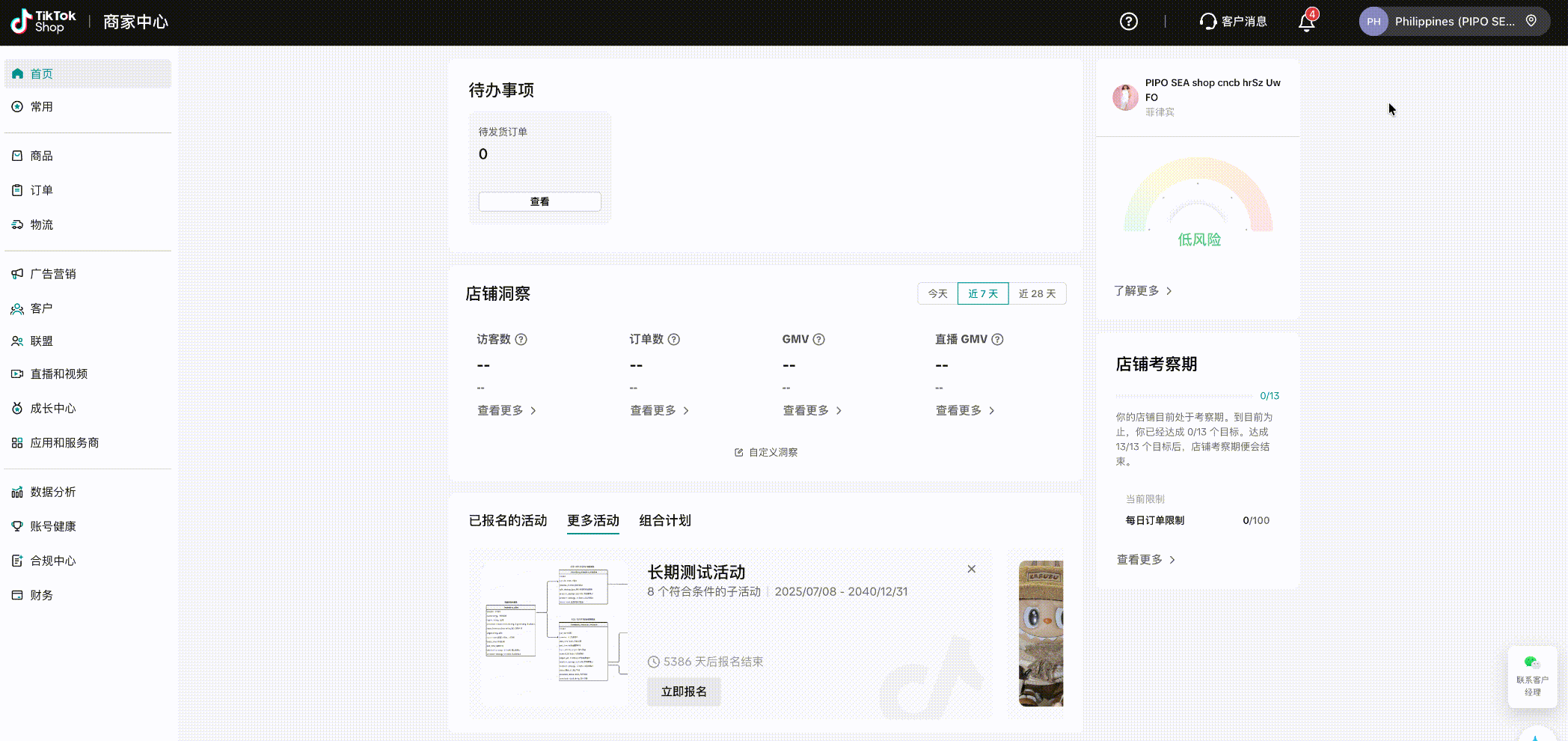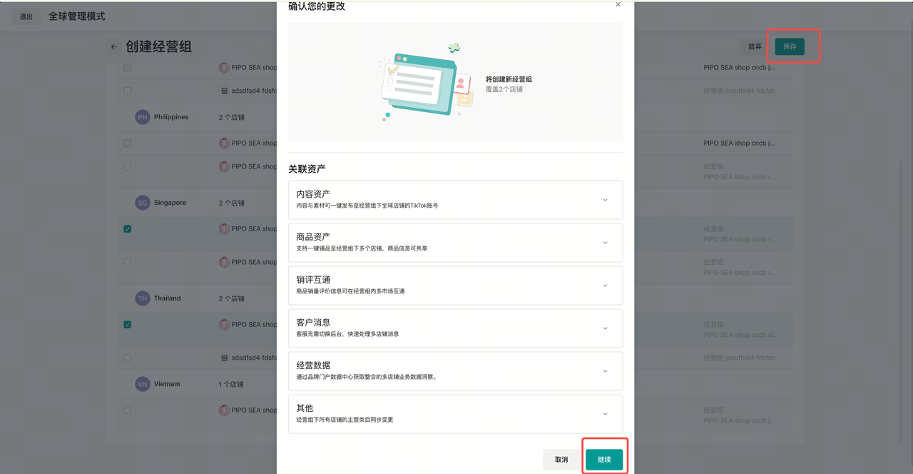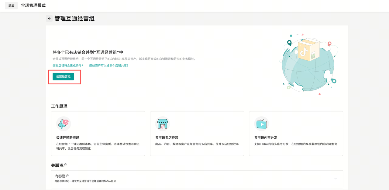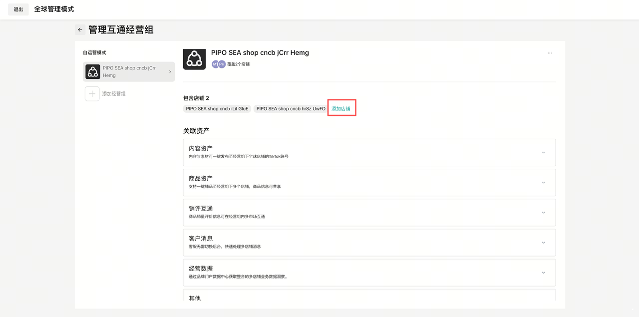 经营组 =不同账号或不同主体资质的TikTok shop店铺,绑定后形成的店铺组