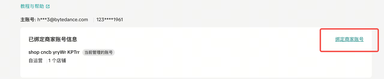 - 输入待绑定商家账号的主账号凭据(手机号或邮箱),确认信息后即可完成绑定。