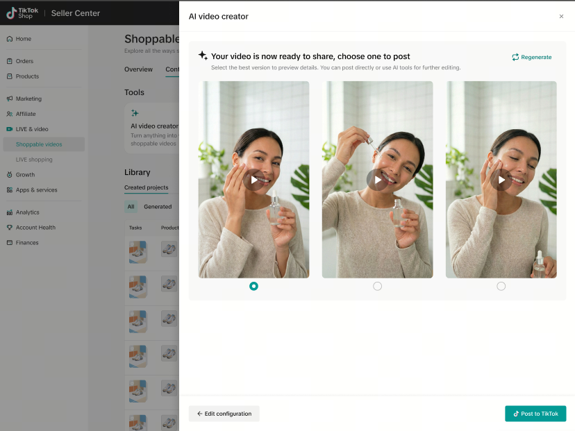 内容全球分发:不用再逐店发布内容、反复适配市场!绑定经营组后,你的内容与素材可一键同步至「经营组」下所有全球店铺的TikTok账号,批量完成分发,节省内容运营成本;更可享受经营组内非原创内容治理豁免,无需担心跨店内容搬运风险。