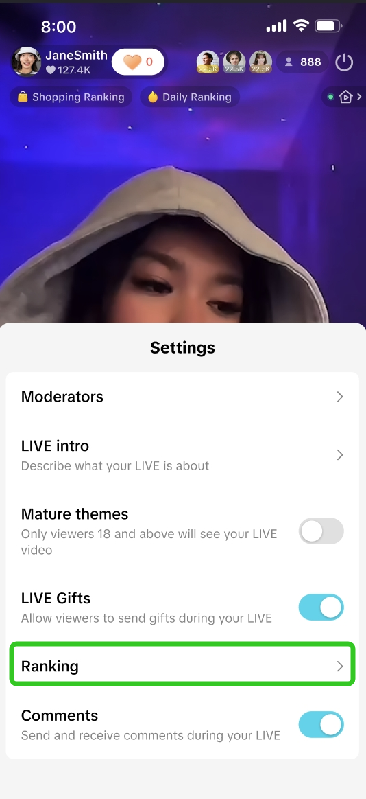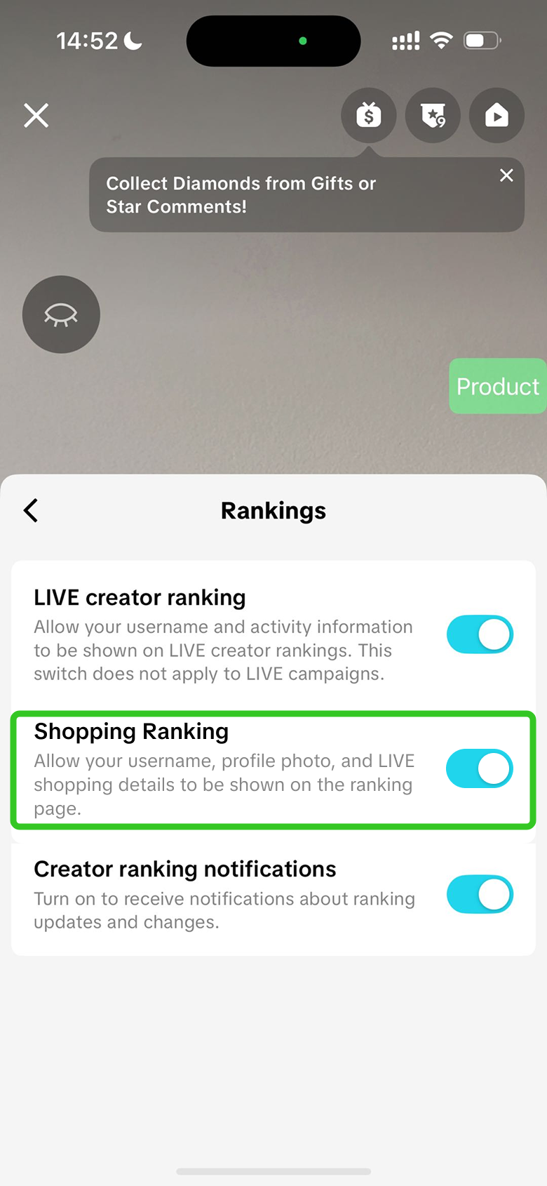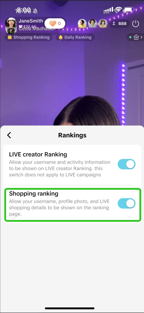![]() ![]() | 保持带货排行榜设置处于开启状态 | 带货排行榜页面展示的主播头像将成为观众实时进入直播间的额外入口。 – 吸引潜在观众进入直播间,扩大受众群体。 – 公开排名可以提升辨识度——即使是排名的微小进步也能增强观众对你或品牌的信任。 关闭功能后则无法出现在带货排行榜中,从而降低曝光度及新观众发现直播的机会。 |