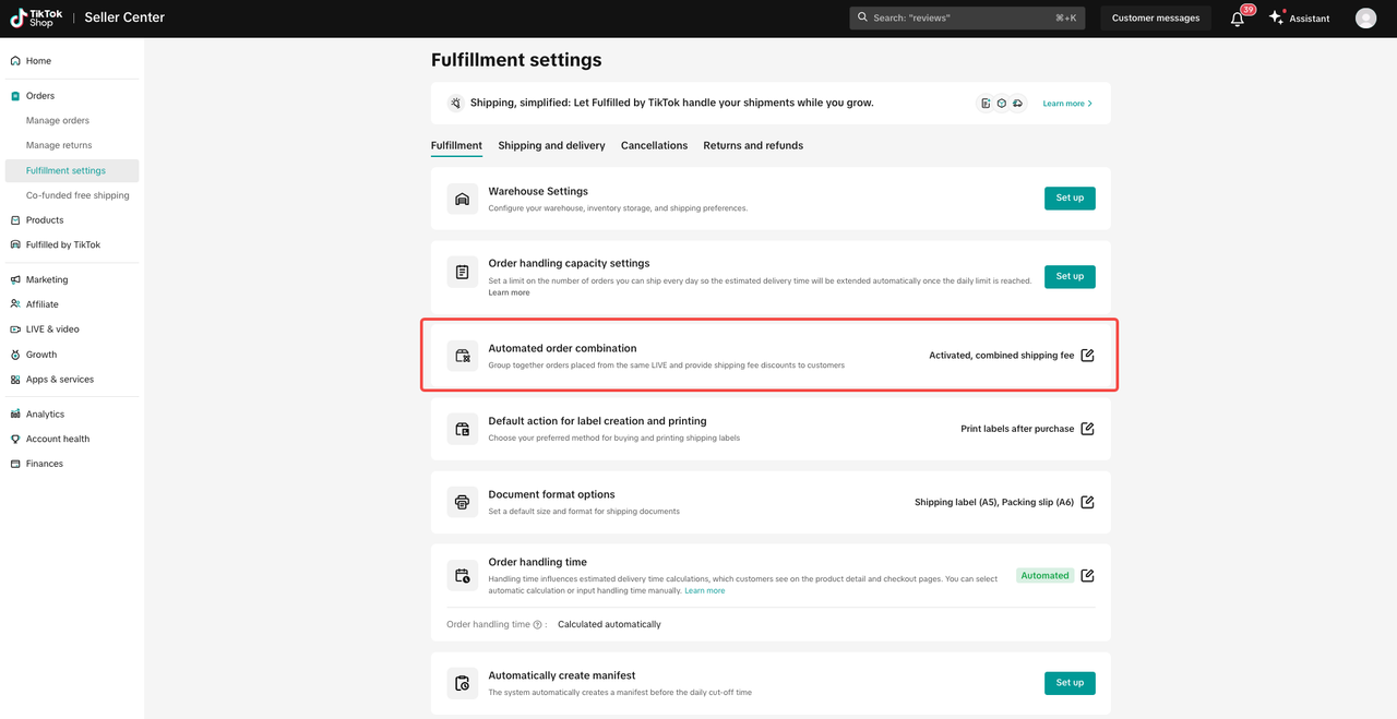 GS(FS)商家可以启用此功能,TikTok平台会为其管理发货和合并事宜。