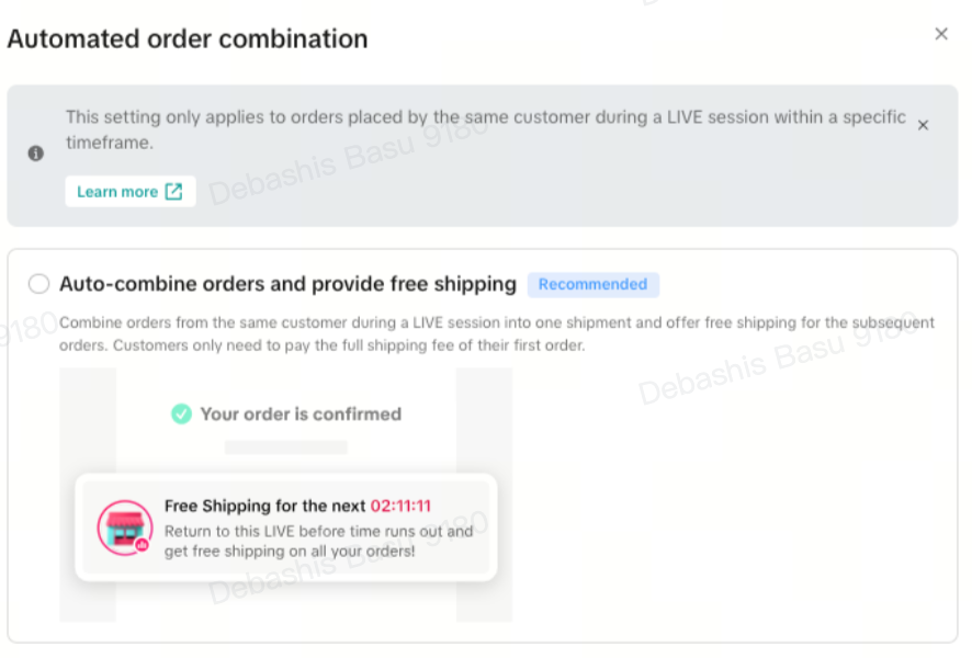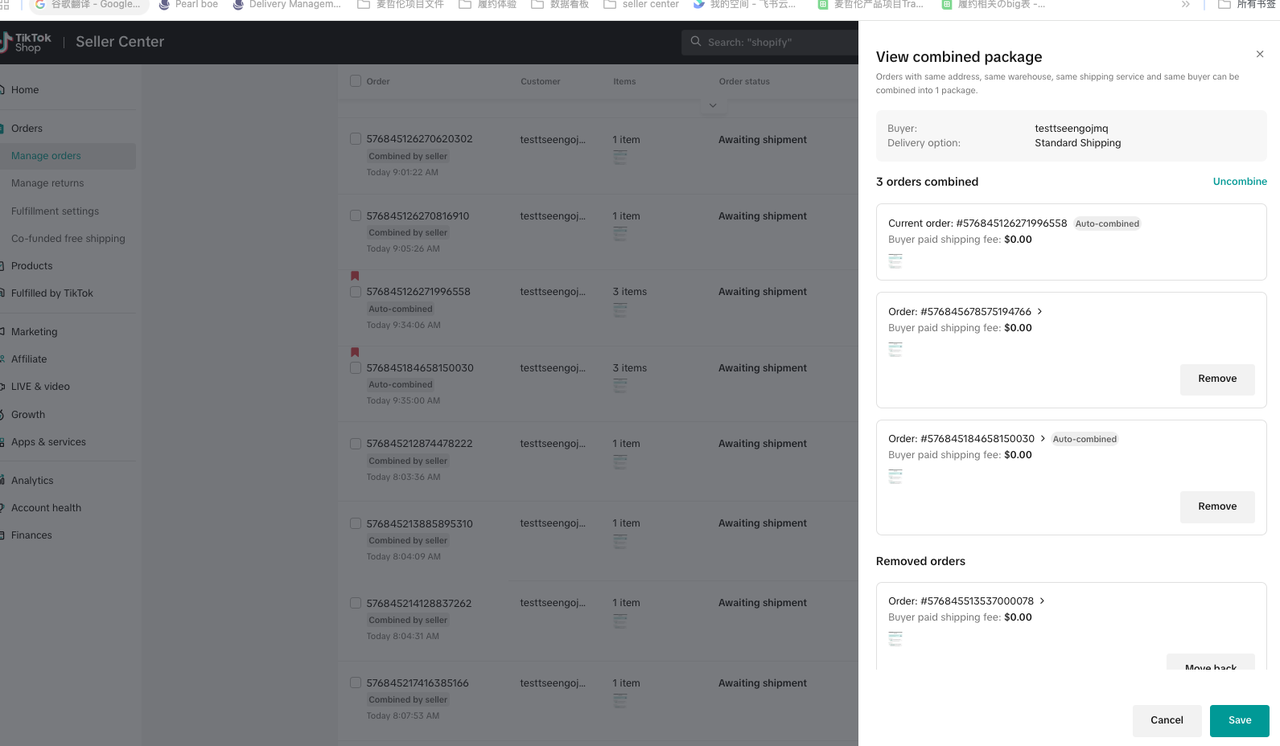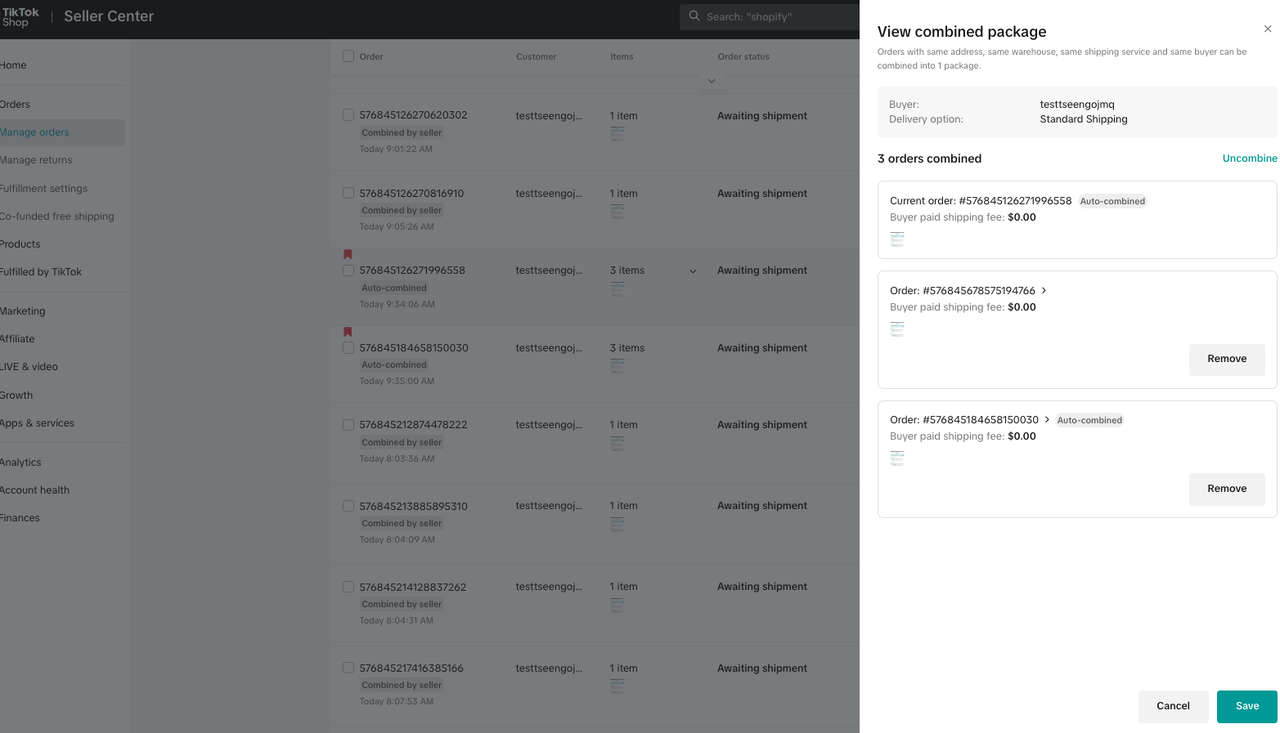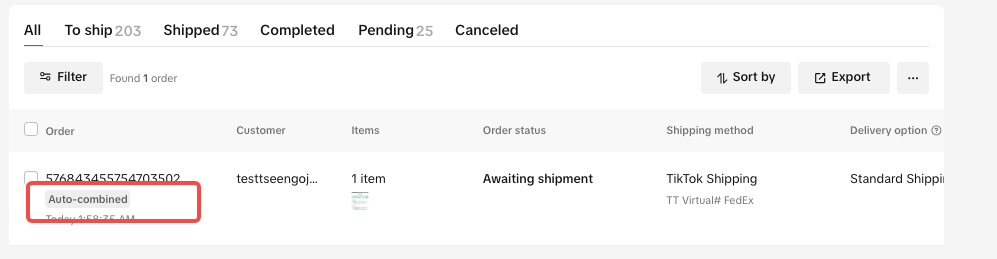 在常规直播中,如果买家、买家地址、商家和商家仓库信息均一致,TikTok Shop会“自动合并”买家订单。