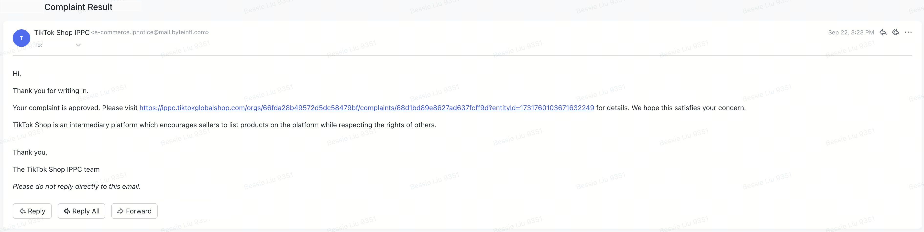 我们将通过电子邮件通知您投诉结果,“投诉管理”页面也会显示投诉结果。